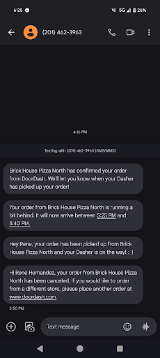 in between though, starting at 4:12pm my orders time kept being pushed back. My lunch was at 5pm and still no food. Called at 5:26PM and asked about my order. Was told that they have no control over who gets assigned and when they deliver but couldn't give me a status as to if my food was there or not. I tried calling Doordash and then was called right back saying that the food was still there. This was at 5:31pm and i noticed my status on Doordash changed and then changed again as if they forgot the order was sitting there. There was a dasher assigned to the order previously and then it changed and was picked right when i called Doordash at 5:31pm to cancel because it said the driver would get there at almost 6pm but of course with Doordash's horrible customer service I got to cancel at 5:50pm. Almost like they forgot and then remembered they had a sub lying around for almost 2 hours. Similar experiences with other...