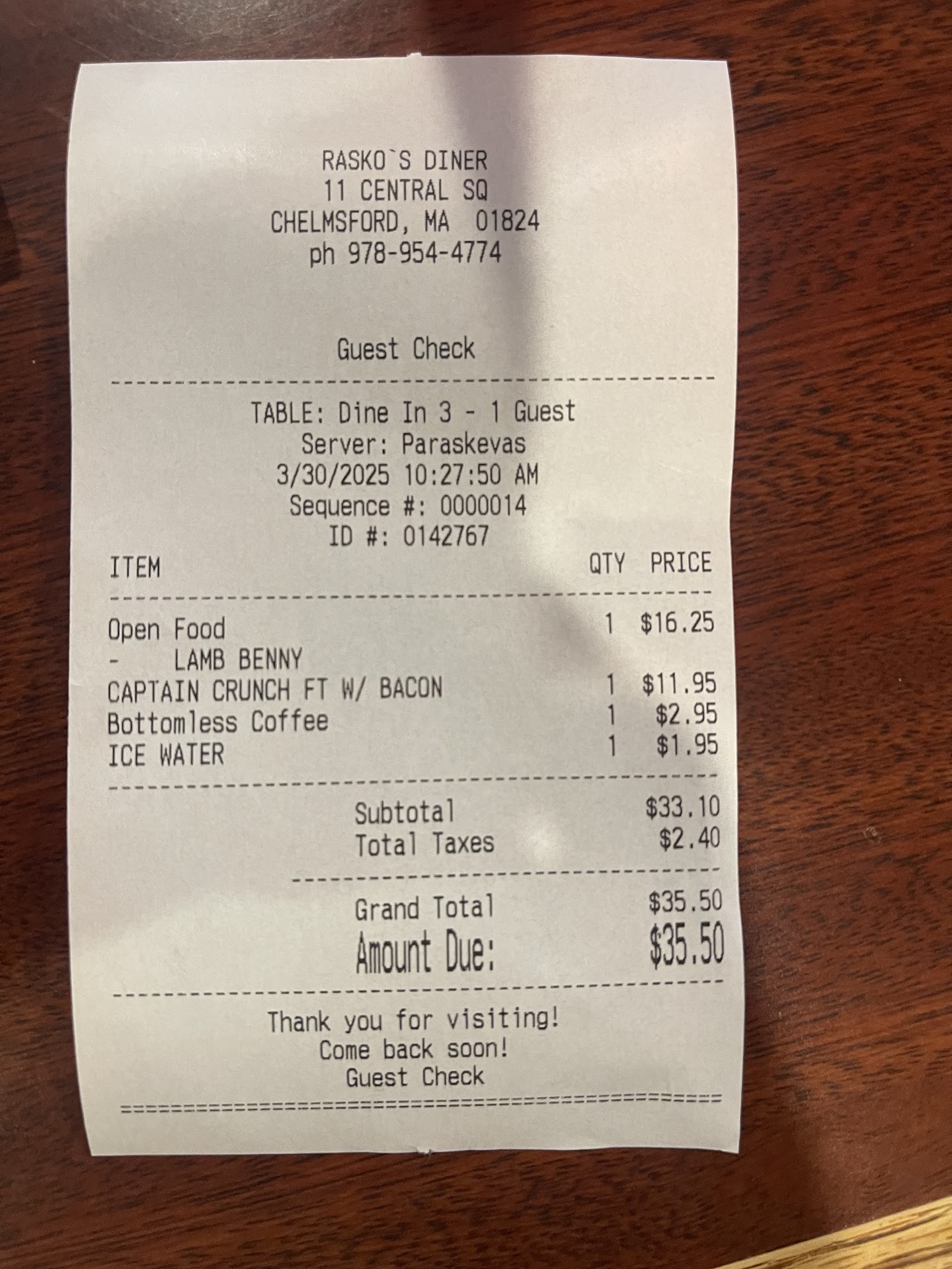 We went there after seeing on-line that they were a nearby diner that had 4.2 stars. The 3 reviews that came up on the main screen were all positive. Now that we have been there, we wish we had first read more individual reviews. I'm hoping to remember this lesson next time (and the time after that).