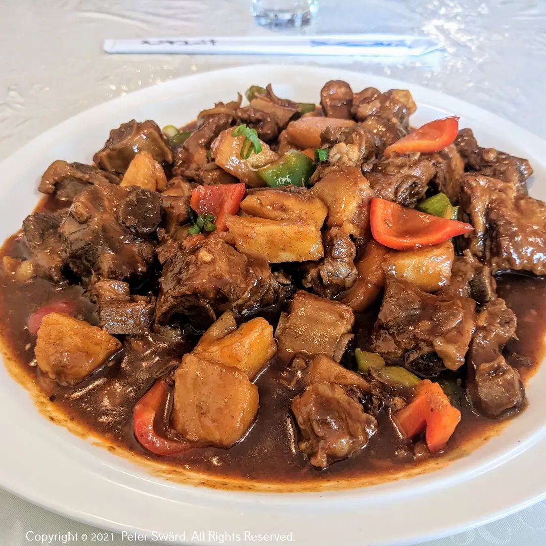 Pork Ribs with Potato (14.95). The owner took my order, and I ordered it extra spicy anyway. She knew that I complained about a three pepper dish that was just about one pepper, so this time it was EXTRA EXTRA spicy! It was a severe case of a runny nose spicy. I wasn't going to order any rice since it already had potatoes included, but It was soo spicy that I had to order a small bowl of white rice. It also helped to soak up the delicious sauce. I again had high hopes for this dish and wasn't disappointed with the tasty and tender pork that fell off the bone. Be aware that there might be bone splinters in the food, but this is kind of expected with anything on the bone. The potatoes were cooked perfectly.