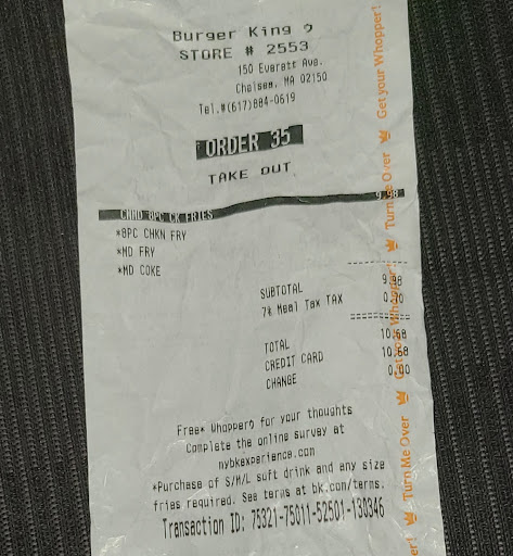 Just drive some where else. As a life long resident of Chelsea who has been going to this specific location my entire life. I can safety say it's one of the worst locations around. You will get your order wrong and they will have issues even figuring out what a Whopper vs a regular cheese burger is. Heck I was even given a fish sandwich once when I asked...