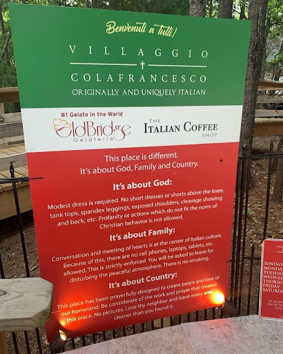 This is a beautiful space and I love visiting. When I read the huge bold sign outlining their values and how those values are supported by employees and expected of those who visit, it was like opening my mind to another world. I love how the walkway winds through a pine forest, curves to the right where little shops are open to explorea coffee shop that is nestled beside a gelato shop...across the deck, another shop filled with beautiful items from pillows to cups to children's books and handmade cutting boards. This same shop also has delicious foods from meats to milk, cheese, eggs and even raw pet food! Their prices reflect the excellent quality and the fact the food is made with love. Another lovely warm space is on the other side of the gelato shop where they roast the coffee beans and where one can sit on a comfy seat and enjoy the fire in the fireplace. It refreshes my spirit to visit here, to view the space directly instead of through my phone, taking videos or photographs. This reminds me to value direct communication to my world, instead of through the "middleman" of a phone. I appreciate the protective quality that their respectful requests regarding dress code offers- for me, it elevates the experience to witness myself and others in this way.. Casual dress (especiially beach wear that i often see folks wearing iin stores) has its place everywhere else, and this space place isn't like every other one. It's different and that's the experience one agrees with when they enter this place...even if they forget to read (or totally disregard) that big, bold beautiful sign. It's amusing to me that some who attended were offended: they were their own cause of offense, as they didn't read or they didn't care enough to respect themselves from embarrassment... It's just another reflection of wondrous human frailty (myself included:))