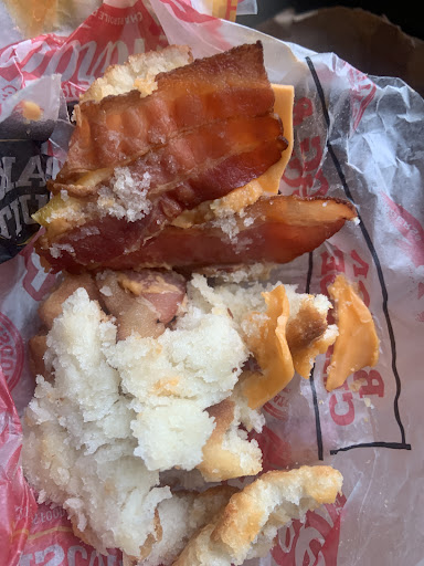 Hardees is one of a few fast food joints that have gone SEVERELY downhill in the last decade or so (though it doesn't hurt their profits, right)...and my experience at this one did little to convince me otherwise. I arrived at 6:30pm, one person in front of me at the drive thru...in minutes, I place my order; maple waffle chicken sandwich combo w/ large Coke, lg cheddar bacon fries, blt ranch burger. There's no screen that shows they hit the right buttons, but the lady reads the order back. So far so good. The guy ahead of me has been at the window about 6 minutes, and is relegated to the 'we're so busy' lane. I see 5 people on front line, place looks barely steady busy...takes the girl a few to take my money, a few more to get my drink and change. Mildly annoying, but I'll survive it. About 7 minutes later, she walks up and asks, "Whachoo waitin on?" Patiently, (I've done fast food work, it's stressful, even more so I suppose, when you have no initiative to even try going the extra 2 feet...) I mention the chicken sandwich, and before I mention the fries and burger she vacuously walks off, yells into the kitchen, and comes back with a big bag 'full' of a tiny chicken sandwich and fries...regular fries. I say I had a burger (forgetting until later that I wanted bacon cheese fries...they say duh isn't catching đđ) She asks what kind. I hand her the receipt; printed in clear, readable english, so she can see the info she should've known by now. Meanwhile, poor SUV guy is still waiting for service, and she finally returns with the full-er bag. I leave, and the waffle sandwich is hot and tasty, but I've honestly seen chicken nuggets that were bigger. Fries were hot, but missing the aforementioned bacon bits and cheese...kinda my fault, but really, how hard is it to fill an order properly after being told twice and being shown the dang receipt? Burger...warm, but obviously took a tanning day at club heatlamp for a couple hours...and dressed in nothing but ketchup! No B...no L...no T (well, unless you count the pureed T đ¤Śââď¸) and sure no ranch. I will say the Coke was cold and refreshing...but we know what they say about stopped clocks. I don't mean to be hateful, but this kind of thing is pathetic...lifes hard all around, but why settle for the lowest common denominator, and make it even more difficult for everyone? I pays my hard earned money...real money that keeps you rolling, and this is the mediocre at best quality of service you give in return...good standards and efficient, accurate service costs nothin but common sense and decency, and might just help your credibility (and profits)....