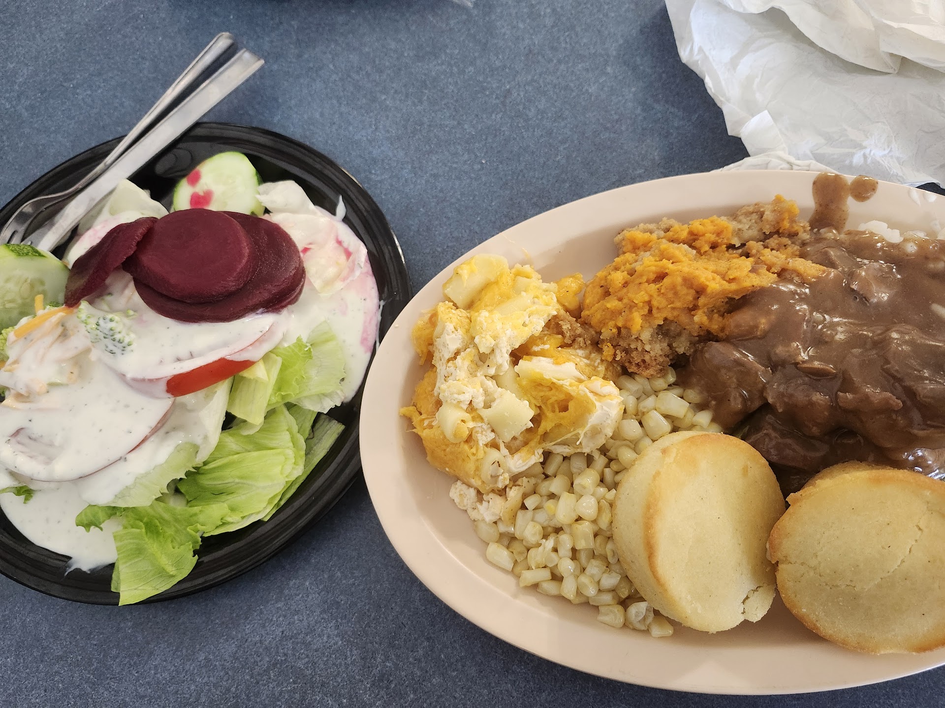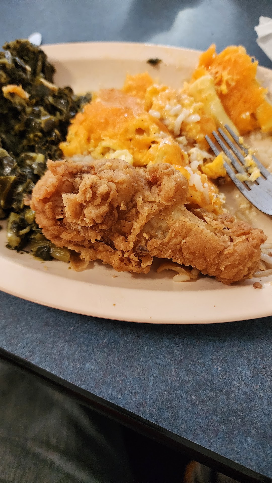 Read moreThe place is excellent clean and nice i didn't see any corn though the chicken was nicely fried inside and out but not much salt on the inside of the chicken (I like it salty) there was no soda option but they have sweet tea lemonade and water and they also have coffee all of it is self serve food and drinks as much as you like they too offer deserts (I didn't have any due to lack of time) but it was really good and they are not watching you how much do you eat or how many plates so you serve...