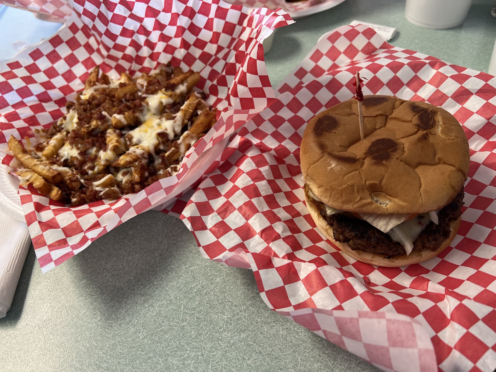 The food and service was amazing, but it cost us $48 for 2 people to eat. We each ordered a cheeseburger, bacon cheese fries, ranch, and a medium drink. They charged us for each item individually instead of doing a meal and doing an up charge for cheese and bacon on the fries. Then on one of the fries they charged us for fries add bacon and cheese, which caused them to cost over a $1 more than if they just charged us for bacon cheese fries. Just be aware if you eat here that it’s going to be charged to you individually and cost a lot. I would also suggest more rock for the parking lot, as you had to dodge massive holes just to get to a...