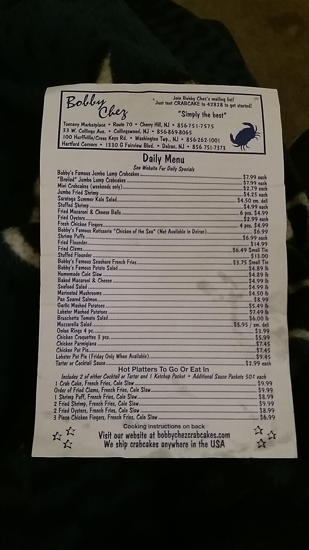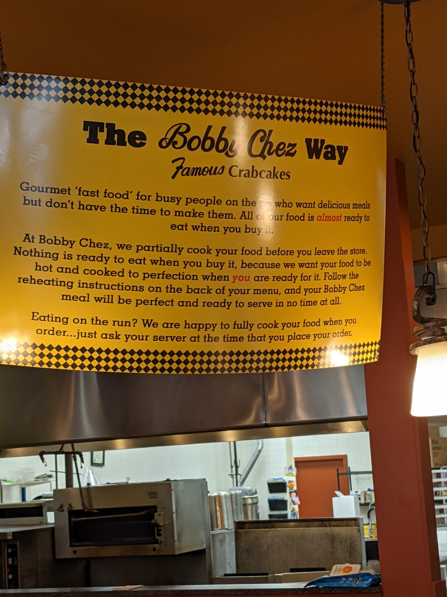 Read moreIf you have noticed a difference in the quality or portions and the increase in price it is because Bobby Chez has been sold. The new owners are probably hoping you continue to patronize the stores but their input is not a welcome attribute a what we considered our selves as a loyal Bobby Chez take out family. The friendly and loyal staff is gone and so is the quality. It’s a shame that the King is Crab Cakes has retired but our family has seen a difference in the new ownership and am not pleased. Stores closing, help changing, portions getting smaller and prices rising. Sorry Bobby Chez Takeout, but we’ll seek...
