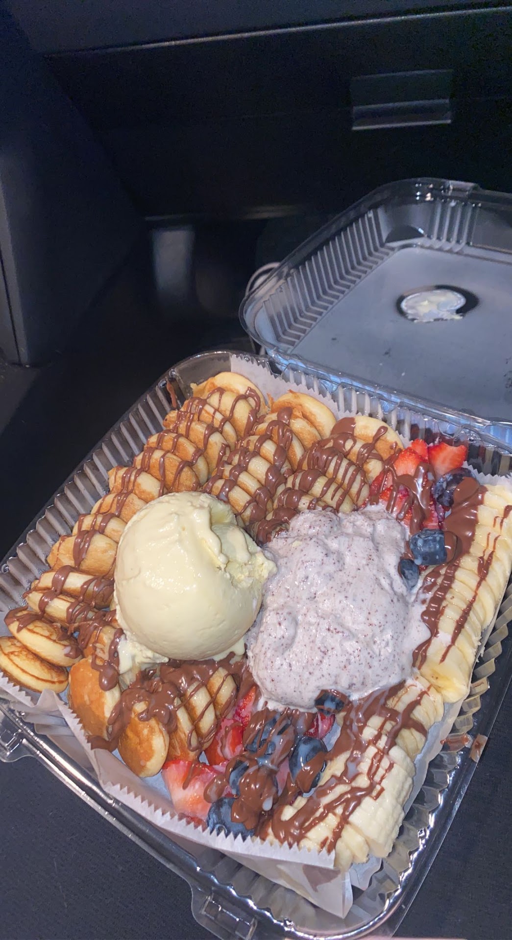 I came later in the evening on a Friday around 7pm. We ordered the elote and churros bite. We wanted to try the waffles but we were told they sold out. The churros bites comes with ice cream so we selected the strawberry cream (because the vanilla and chocolate was sold out).
