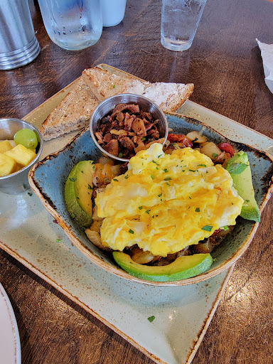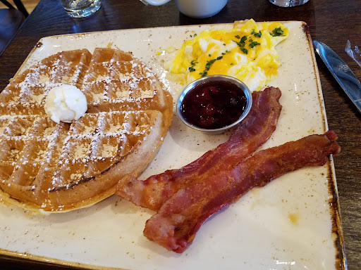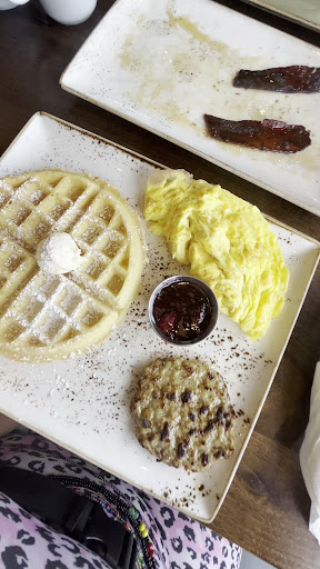 Read moreMy first time eating there with family members and we enjoyed our breakfast very much. We each had the Tri- Fecta with the Belgian Waffle. I chose egg whites and the savory chicken sausage patty and the other's had the bacon and scrambled eggs. I don't normally eat any type of sausage but the description sounded good so I gave it a go and it was actually very good. The eggs were cooked just right and the waffle was delicious, warm(could have been warmer to melt the small scoop of butter), a light crisp to it but was light not heavy. They also served it with a small tin of warm cherry compote that was delicious and a good pairing for the waffle. They serve the Syrup warm and it also was very good ( l usually bring my own small maple syrup but I didn't need to theirs was a thumbs up.) I ordered the Morning Meditation drink and wow what a nice morning juice and it was presented nicely. My nephew ordered the Blue Booster juice and after sipping his mom's Morning Meditation he said he liked the MM better. Now the only downside was the initial waiting for a server to come to the table. It turns out management made a phopa in telling some staff to stay home because of the weather thinking folks would stay home. NOT. People like breakfast and they came and they were short wait staffed and bus staff so the three wait staff and the manager were doing everything but cooking (thankfully). Hats off to the cooks and the nice server that explained why.👌 We definitely will return to try some of the other nice looking menu items for breakfast and lunch. Oh and the decor was nice with list of natural bright light coming through all the windows and when the weather warms up there are a few tables on the front patio to enjoy. 😊🌻...