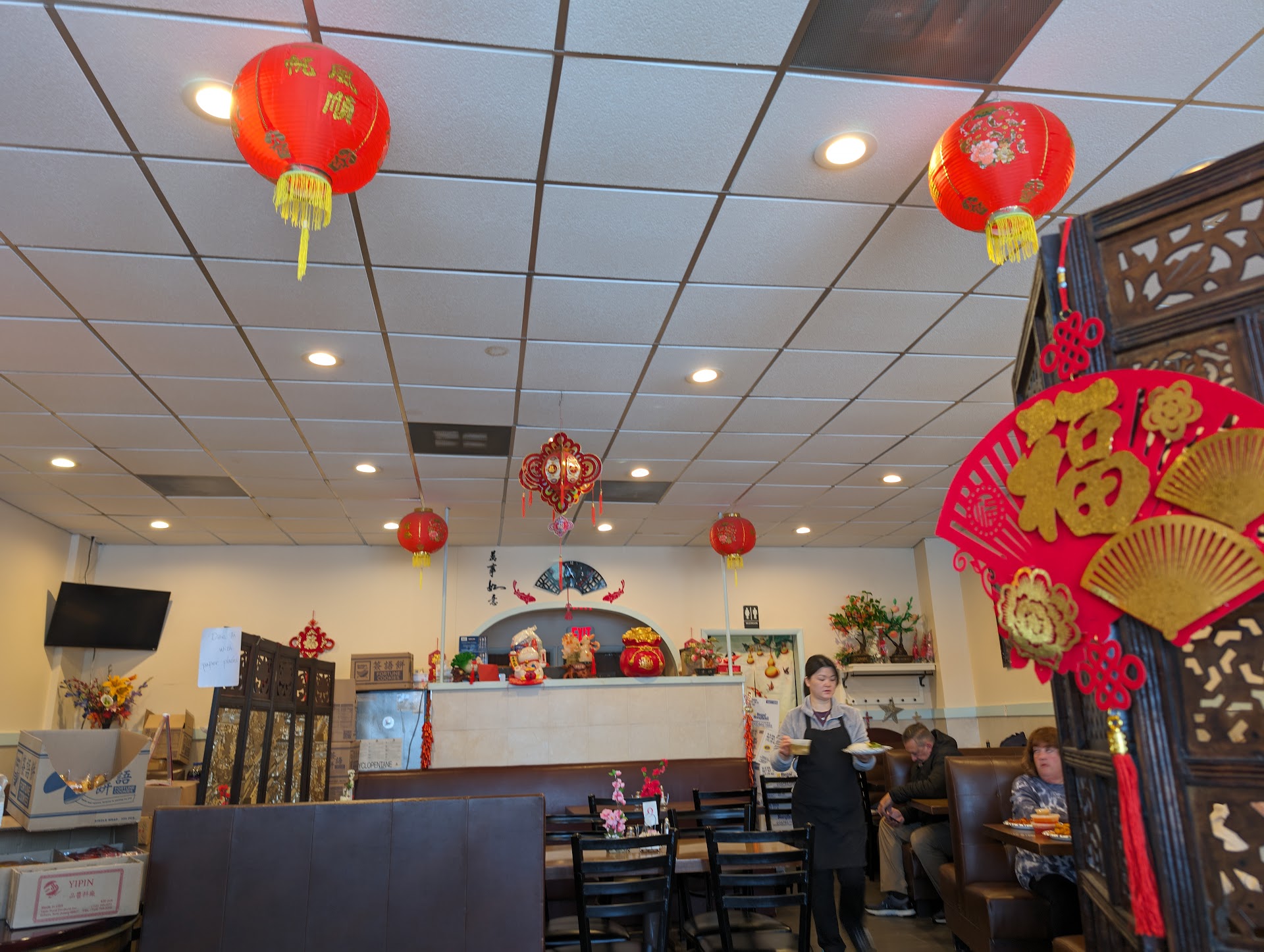 Went there on a Friday night to get take out for dinner. Normally any Chinese restaurant 10-15 mins max for your order & that is exactly what they told me. My order was placed 5:41 & I finally got it at 6:25. For a straight up dinner for 3. Nothing fancy. In the mean time the place is run by children. Two 12yr olds took my order as well as the patrons eating in. Along with 7yr old boys fighting over who was going to take the drinks to the table. Where are the adults? I didn't see any until the delivery kid, maybe 17 walked in to pick up another order. When finally I thought I had my dinner it wasn't. As I am looking thru the bag touching all the food that wasn't mine, did an adult come out of the kitchen and tell me still not ready. I still had 10 mins to wait for my meal to be ready. What??? Food was ok but to wait 45 mins and to be run by children I say...