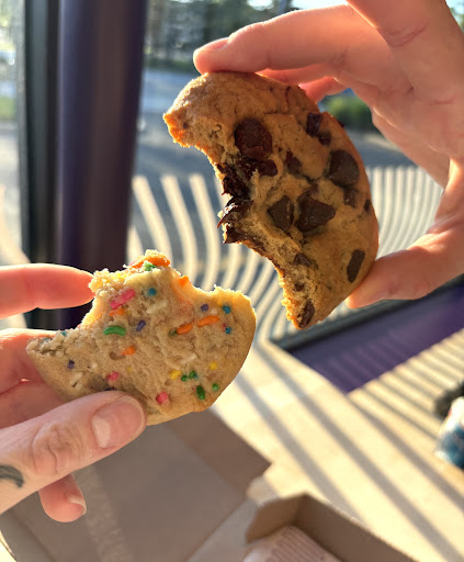 I recently visited Insomnia Cookies and wanted to share my experience. When I placed my order in person, the lady who took it seemed very confused and had me repeat it four times. I ordered five cookies: four peanut butter and one macadamia nut. She informed me that the cookies were freshly baked and too soft to be packaged immediately, which was fine with me.
