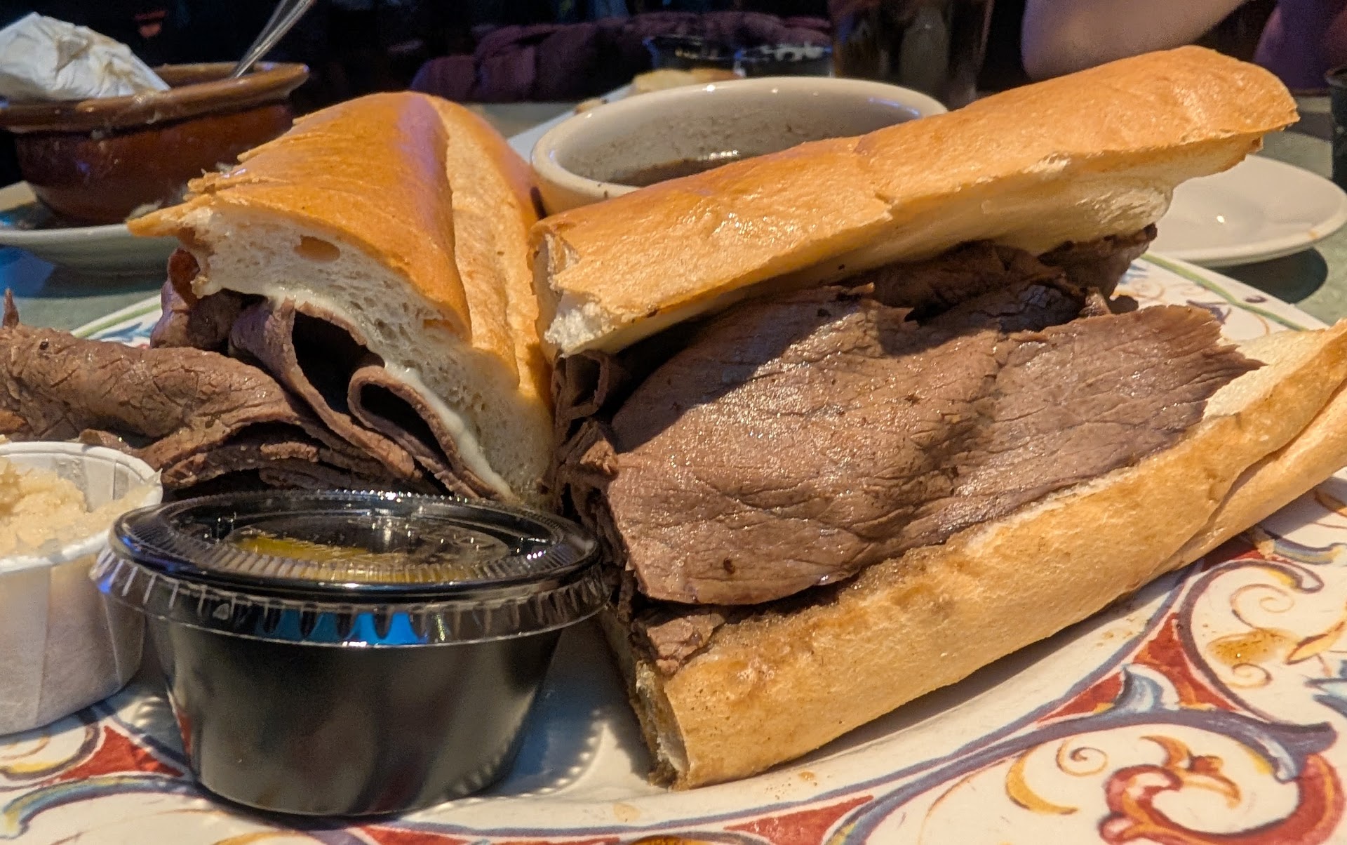 I asked the server for French onion soup without the bread inside the soup (as I didn't want soggy bread) - unfortunately I got a big piece of soggy bread that I had to fish out. Her response was "oops, sorry about that" and walked away... I decided to try their roast beef sandwich based on some previous reviews on Google - there was a nice portion of roast beef ; the au jus had good flavor but unfortunately it was kinda cold. It made for a kinda cold dry sandwich (unless I dipped it in the au jus).