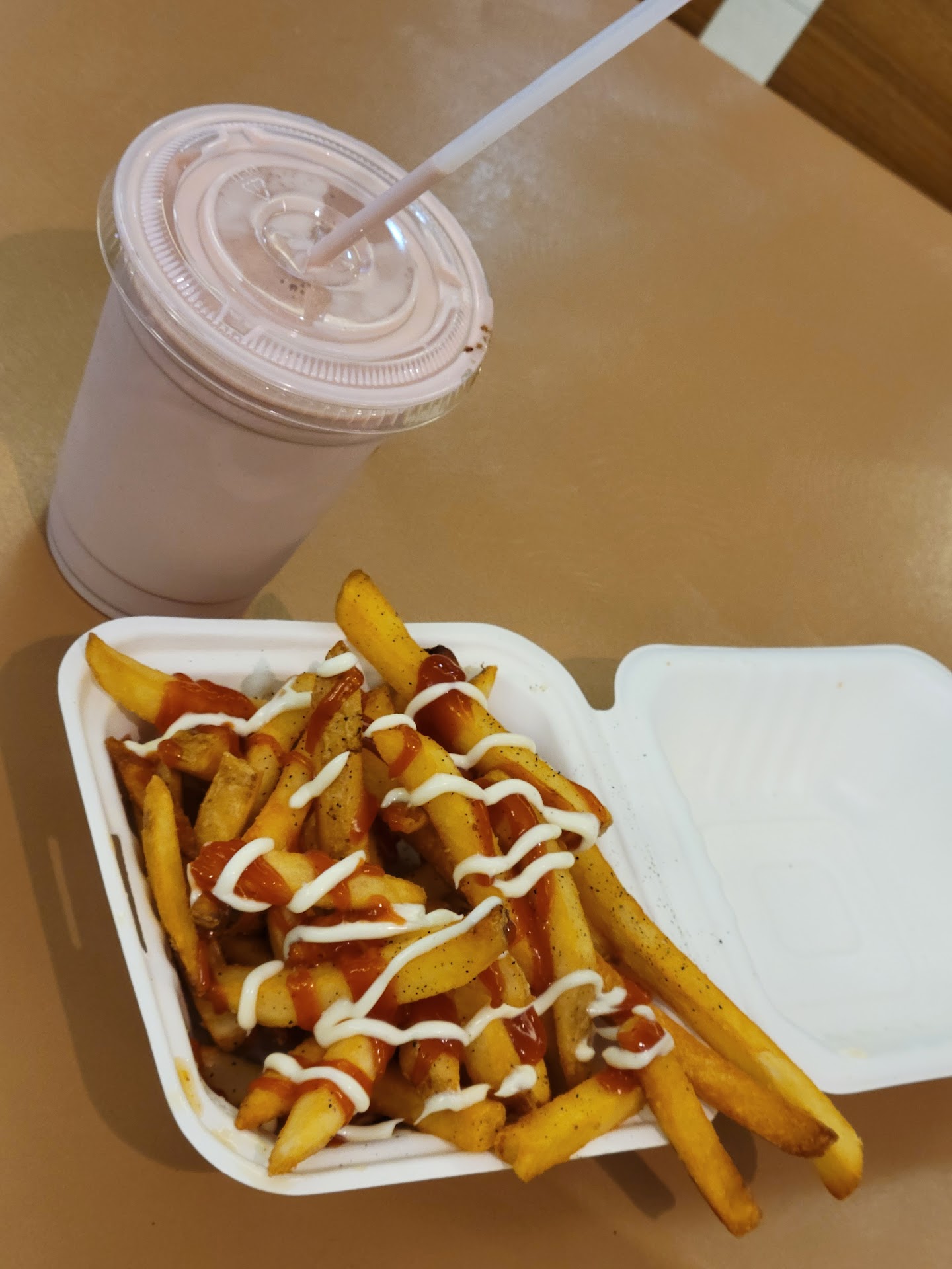 Cherry Hill location is always empty so i said im going to give them a play. First time here. Ordered on kiosk. As im waiting i noticed the front counter floor area is covered in soda. Customer advised staff. Female stays on her phone. By the time she finally gets to it there is a really bad mess where u cant even approach counter. She looks at mess & says im not cleaning this. Let maintenance clean it. My food is finally done & i noticed they are using reg Martin rolls for the burgers. Not these beautiful glossy rolls in the pictures. Then i see my fries. They are clearly old & refried. I can see thru them. Go back to counter for salt pepper packets. They dont have any. They put some in a sauce container. I go back because i asked for sauce on side but never received it. I go back a THIRD time because i ordered a drink & never received it. He says sorry no ice. So I have a hot orange soda. Meanwhile the female employee is just on her phone texting her superior complaining about something. Shes reading the text out loud thats how i know. I will absolutely never be...
