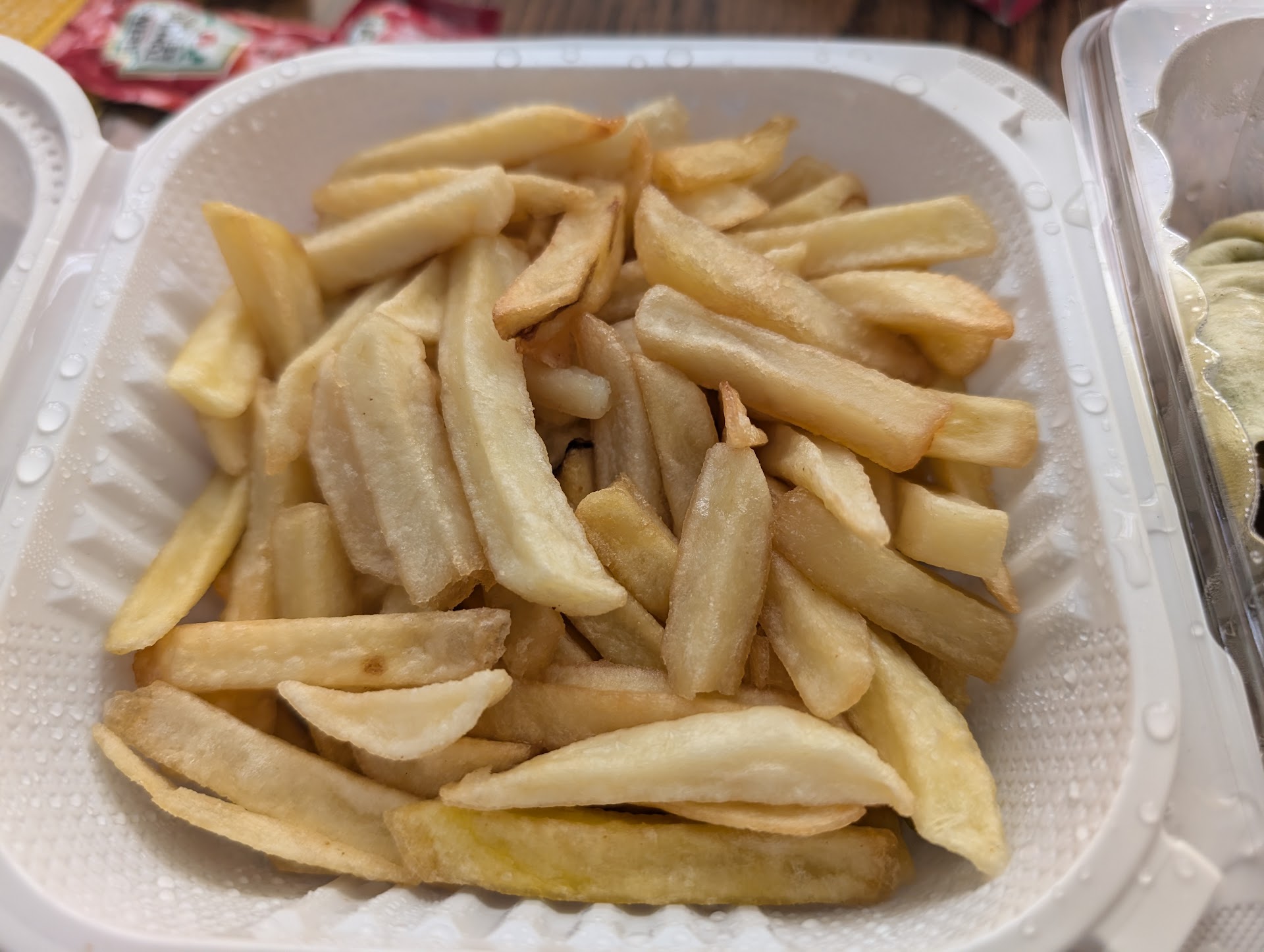 And then...I waited. Five minutes goes by...10 minutes go by...nearly 15 minutes or so go by and I look up from my phone at the staff in the pizzeria kitchen. Nothing seems to be happening. Now, I definitely assumed that it would take less than 10 minutes to make the wrap and fry some fries, right? There are six employees present including three right in front of me in the kitchen. I see a paper bag on the side near the register and ask the man who looks to be in charge if that's mine. He picks it up, looks inside, and asks me what I had. I tell him. He says something I can't make out and so I assume it's not my food and keep looking at my phone. Another five or so minutes go by and he tells me my food is ready. Shocker--he passes me what appears to be the bag that I asked about earlier.