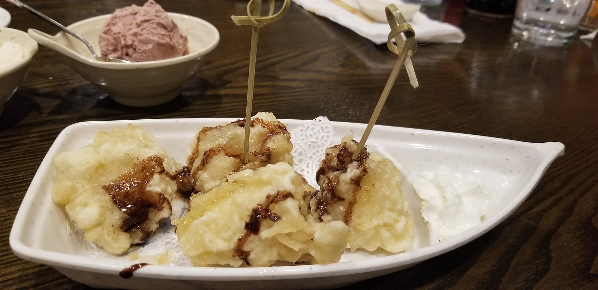 Eel Nigiri Salmon Nigiri and Sashimi Japanese Sausages Pork Ramen Noodles Beef Teriyaki Beef Yakitori Shrimp Tempura (a must) Crab Tempura Spider Roll Pork Buns Chinese Donuts ALL THEIR ICE CREAM!