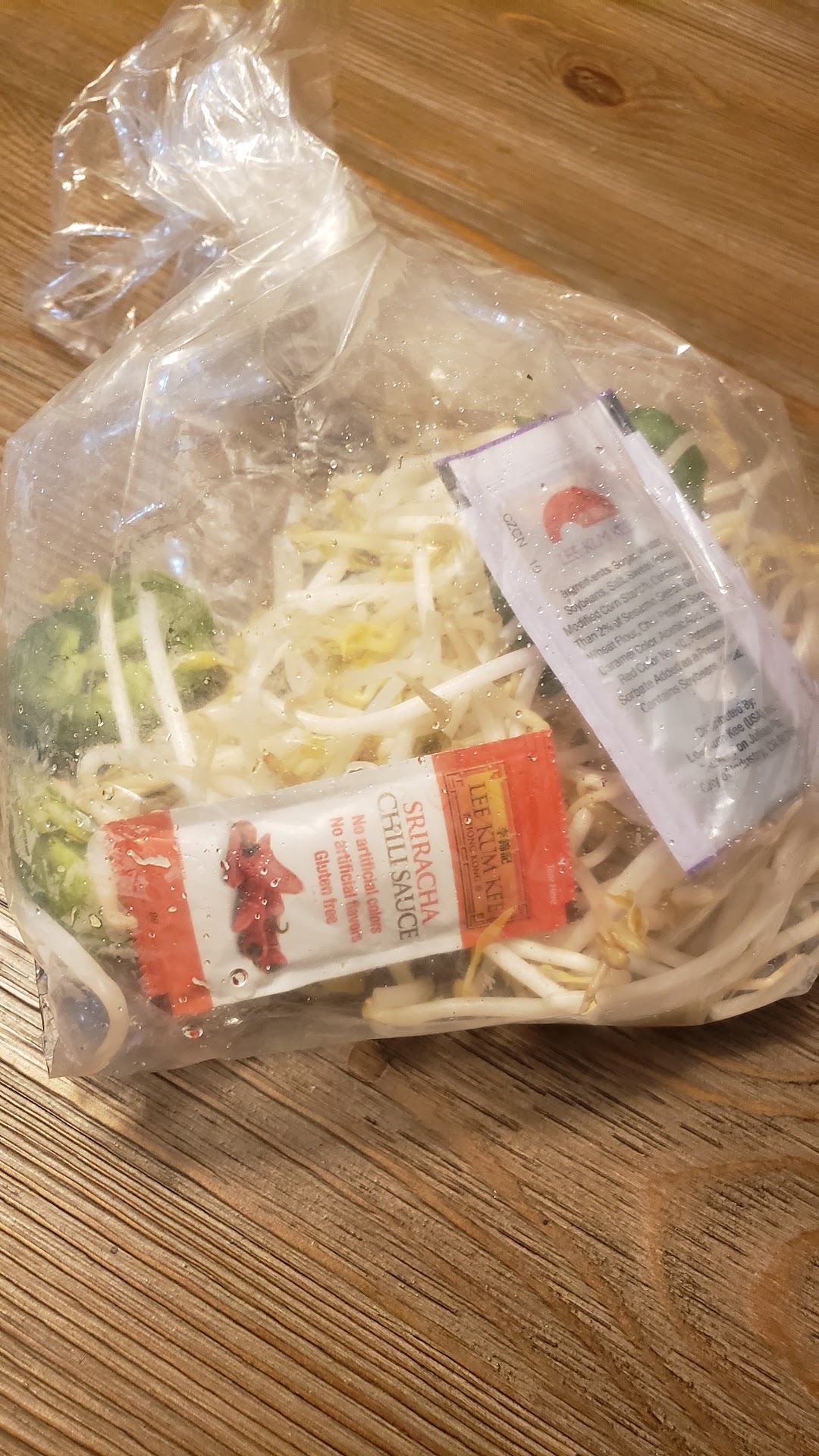 So we gave the restaurant a 4th and final chance. Upon ordering over the phone we were told we cannot pay at pickup and must supply payment over the phone. Okay weird... first time this happened. Usually companies allow for payment at pickup due to security fraud that puts the restaurant at risk for handling over the phone payments. Made us a bit uncomfortable but okay we ordered our Pho. This order was not nearly as good as the first two orders. The sauces had changed and the food was not as flavorful. The final straw which has completely alienated me from this restaurant was the poor food safety. They threw the sauce packets in with the fresh bean sprouts. That's a hard no for me.... I work in the food industry and this is completely against any ServSafe requirements. You Do Not mix fresh vegetables with unsanitized sauce packets. (Picture provided)