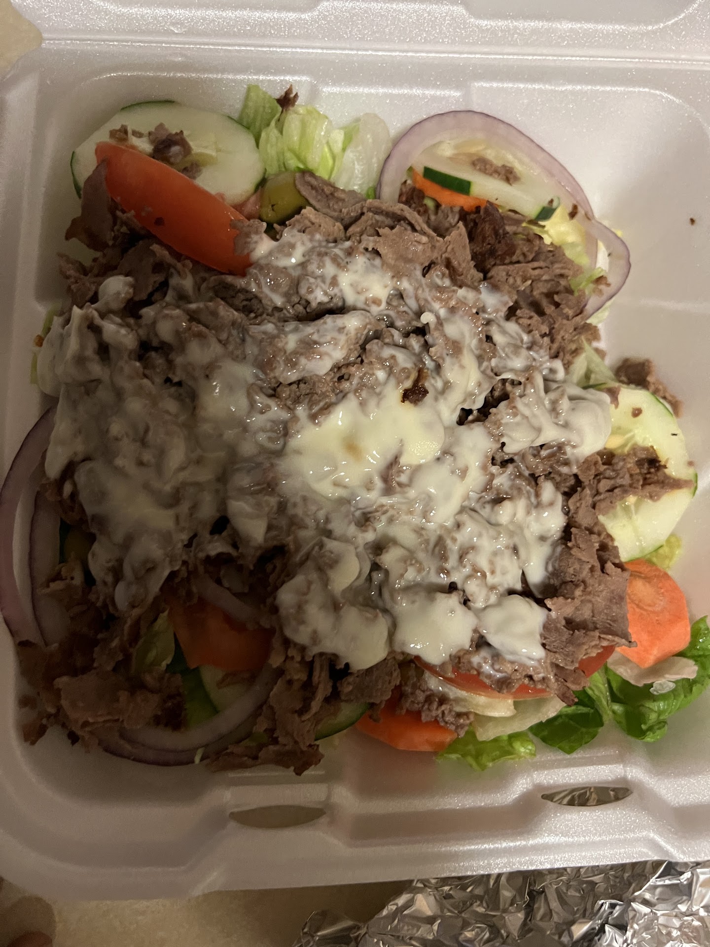 Worst purchase of 2022 so far. Are these pigeon legs? 12.99 for the smallest legs in a 10 piece Iāve ever seen in my life. Iām glad I got Buffalo sauce otherwise theyād be completely flavorless. Not only that, there were only 9 wings. Technically it was 9 1/2 because there was a super small one like they snatched a leg off a baby blue Jay in a hurry and threw it in. The pictures donāt do it Justice. It was sad. The salad (cheesesteak salad) why tf did I branch out and try something different? It was gross. The ingredients arenāt really fresh and once againā¦flavorless. My goofy self swiped my card without a care in the world and didnāt even look at the receipt until I looked at the food. Iām literally heart broken. 30 dollars for my worst dining experience in years. Yes, 30 dollars for a salad and daddy long legs that I picked up myself. Iāve tried this place before and it sucked years ago. I frequent the plaza and couldnāt remember why I avoided this place. I remember now! If I ever forget again and anyone reading this sees me walking in this place, you have my full permission to hit me with your car. I consent and will not press charges.