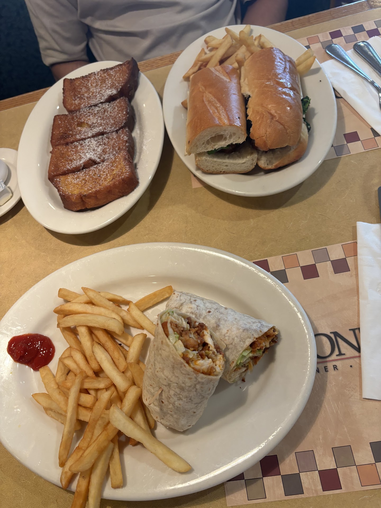 My boyfriend and I recently took a trip to Ponzio’s in Cherry Hill for a mid-day meal, and we had a fantastic experience. Ponzio’s is a spot he loves, so he insisted I give it a try, and I’m glad I did! While the restaurant was lively, it wasn’t overly crowded, allowing us to be seated immediately without any wait. The place is impressively spacious, offering ample parking for customers and multiple large dining areas. In addition to its welcoming atmosphere, Ponzio’s features a well-stocked bar and a delightful bakery filled with lovely treats. From the moment we arrived, the service was exceptional. The staff was incredibly friendly and attentive, frequently checking in to ensure we had everything we needed. Our food arrived quickly, within about 15 minutes, and was well worth the wait. I ordered a buffalo chicken wrap, while my boyfriend went for a chicken sandwich and their famous french toast. The french toast, one of their specialties, absolutely lived up to its reputation, it was delicious. Everything we ordered was fresh, perfectly prepared, and full of flavor, making for a thoroughly enjoyable meal. Overall, Ponzio’s exceeded our expectations with its warm ambiance, excellent service, and delightful food. It’s definitely a spot we’ll be visiting again!