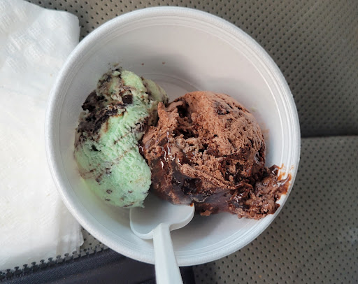 Read moreVery disappointing. This is suppose to be two scoops. It's not even equivalent to one. The mint "scoop" isn't even a tablespoon amount. It's a hollowed out circle. I even asked if their was enough in the bucket or should I pick a different flavor. I was told there was plenty. Don't bother spending your money. Just drive to the Ice cream Parlour. The atmosphere, service and the ice cream/servings are 100% better at the Ice cream Parlour My son's one scoop of a blue ice cream was...