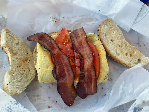 I ordered the Standard, which is your standard BEC on a bagel. Fairly straightforward. I got my bagel and opened the wrapper and things were looking a little thin. I dug in more to research. There was a total of 1 (one) piece of bacon on the sandwich. There was some cheese and I had added Tomatoes and Spinach. The spinach was not able to be fouind by sight but I did see one or 2 pieces while eating. I got a 1 slick of tomato for the add-on. If you are keeping track, that's $0.50 for al slice of tomato. And .50 for the spinach that I had to hunt for.