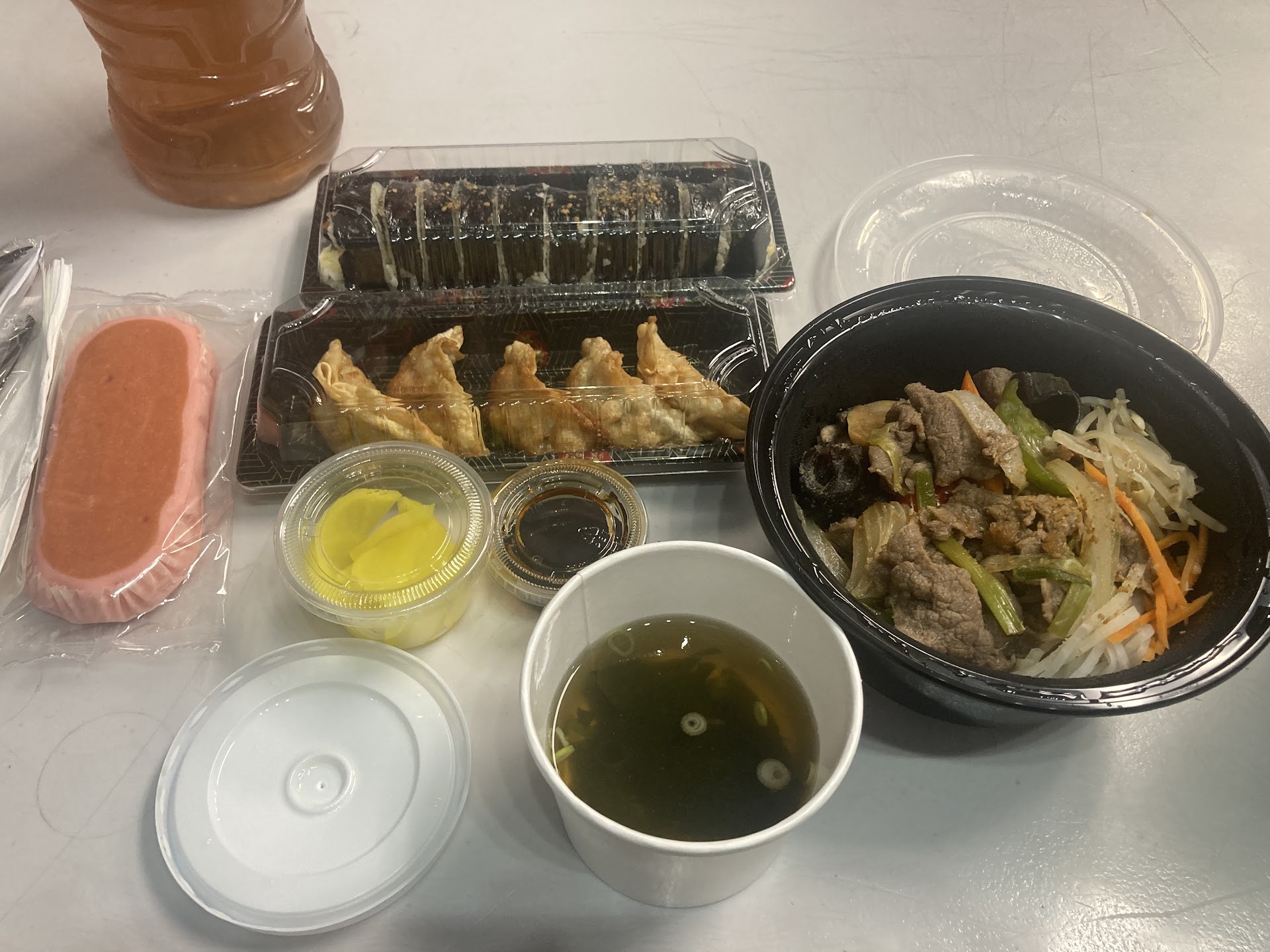 Read moreDelicious food at a great price. Tender veg with the bulgogi with other pickled daikon and bean sprouts over rice bowl hit the spot for lunch, sides of crispy gyoza(even after a 30 min drive before I got to eat them), and gimbap had beef(choice of chicken or beef) in it! Good sesame flavor with crunchyness of the pickles in it and beautifully cut and wrapped well. Hate when it falls apart.. but I would just put in my bowl and eat it if that happened.