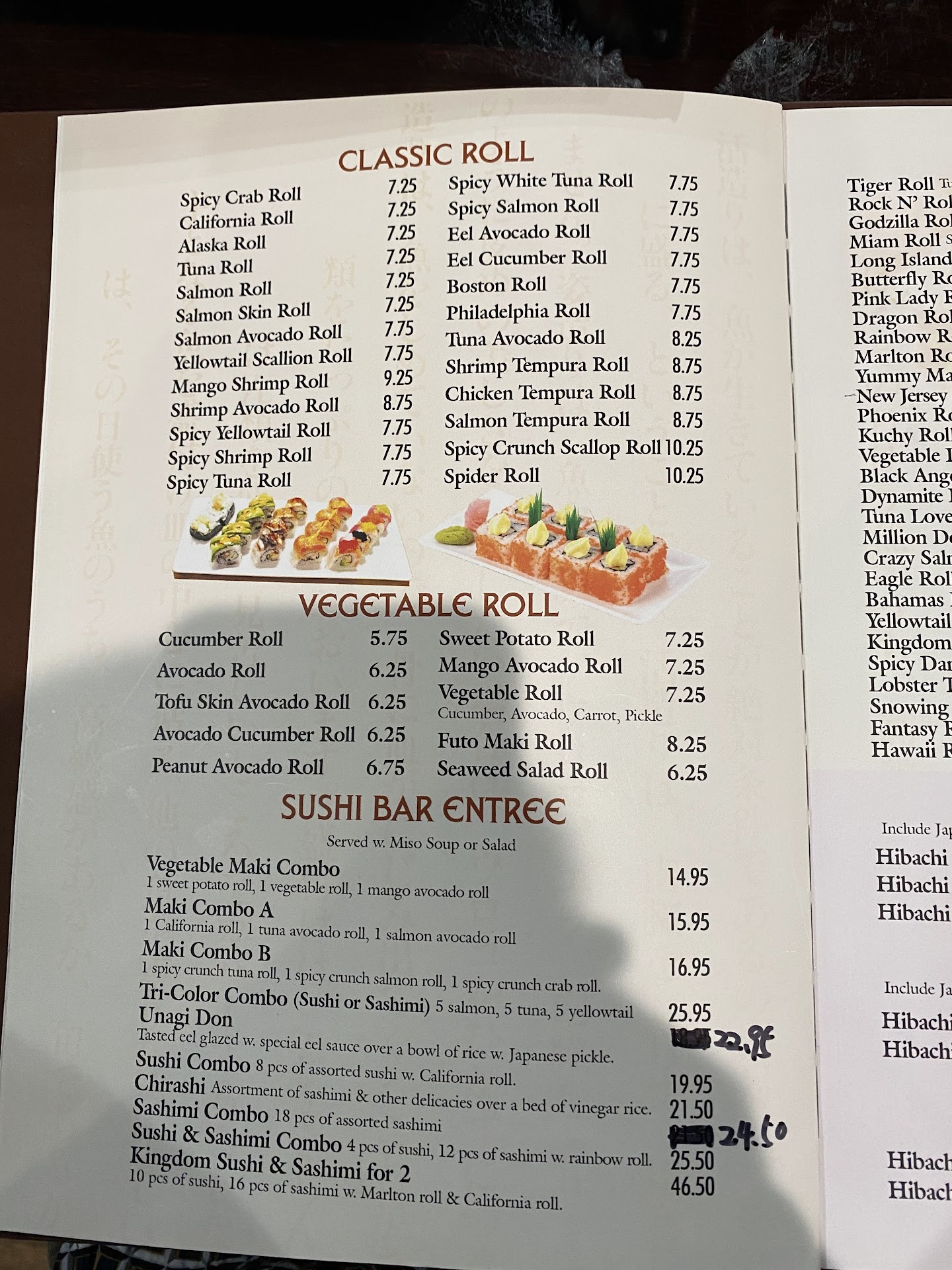 Read moreWe were finally seated after multiple parties that arrived after us, even with some of the others pointing out that we were there before them. Once seated, the gentleman (#1) took our drink orders and gave us our menu sheets to complete. He never returned to the table. Another server (#2) came by about 15 minutes later to ask if we needed anything, and I mentioned that we had ordered drinks that never came, so she took our drink orders again and took our sheets to the kitchen and sushi bar to be prepared. A different server (#3) came by, delivered my daughter's soda and gave me a glass of water (I ordered a hot tea), and rushed off with her tray full of drinks...which included two cups of hot tea. #2 came back about 5 minutes later to deliver our soup, and when I brought up my tea, she said they were brewing it. Well, they must have been brewing in Japan because it took over an hour ro finally get it, after letting yet another server (#6) know when she came over to ask if everything was OK, to which I said "no." Each food delivery to the table in the interim, came from different servers (#4 & #5) who literally dropped off our food, or scooped our empty plates, and ran without checking to see if we needed anything. Once we had all of our food, there was at least a half-hour drought of NO ONE coming by to check on us, nor did they give us additional sheets to order more food if we wanted. It was by far the most disappointing experience I had ever had there, and even more so because we were there to celebrate my daughter's upcoming birthday. #6 presented our check and stated that she gave us a 15% discount because of our experience, which I appreciated, but it didn't take away from the disappointment of the occasion. I sincerely hope they do better in the future because we have always enjoyed...