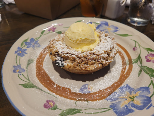 Bluebarb pie, liked it, crumble crust was nice. Blueberries weren't too sweet. Ice cream was just okay. A bit mediocre on the freeze, not icy but probably lower in fat content.