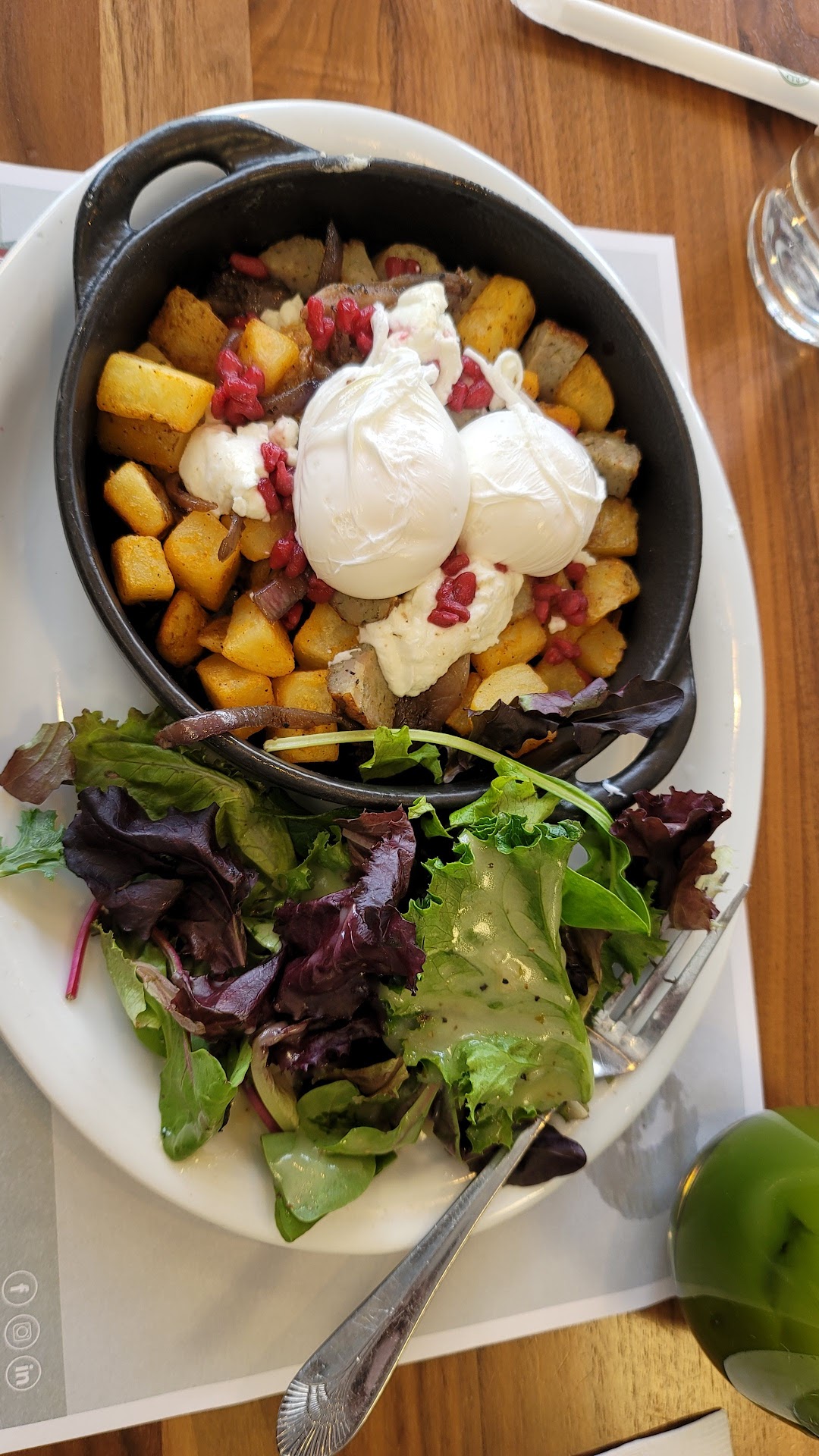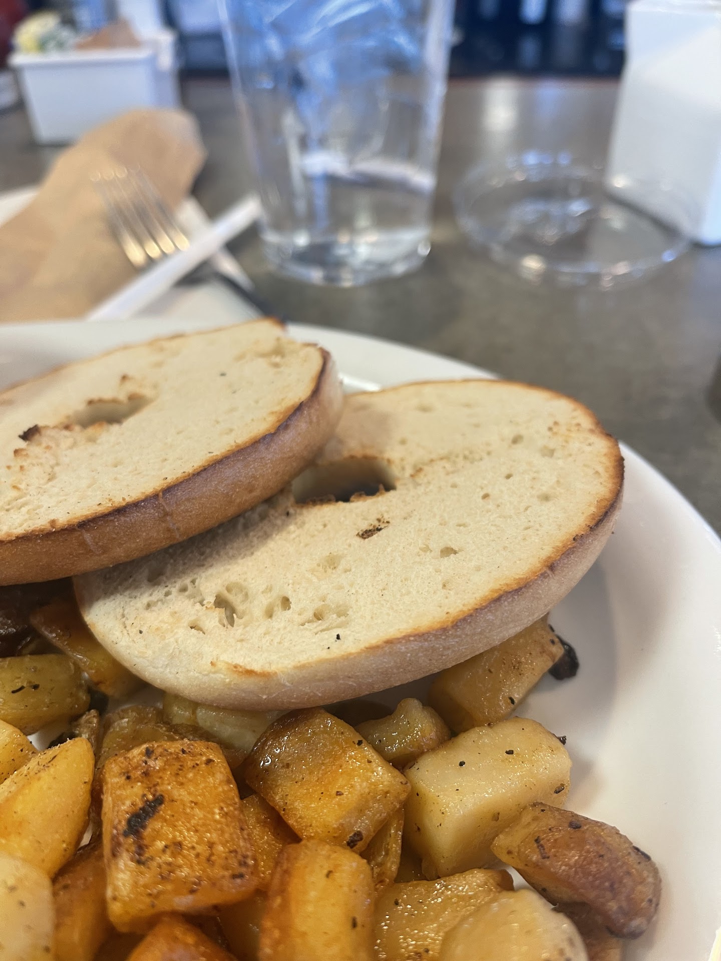 Read moreIt was my first time there through a recommendation, the staff was friendly and the restaurant was packed which made me think this was going to be a wonderful brunch. I sat down at the bar because I didn't want to wait for a table, I was starving. The first thing I noticed was the very hazy dirty glasses sitting upside down on the bar, the bar top was sticky. That wasn't a major problem but it spoke volumes about the cleanliness of the place. The server replaced the glasses and we placed our order, I chose a very simple dish called, "the basic", the way I see it, how can you mess up eggs and potatoes right? Well, the eggs were overcooked and the potatoes were hard, overtoasted and salty. I hate to send a dish back so I ate the eggs because I was starved and had to have something in my stomach. I tried to add ketchup to the potatoes to try to minimize the salt taste, and again I was disappointed, the ketchup bottle was so sticky with who knows what that I had to go to the restroom to wash my hands. Overall I would have to say, the English muffin was the best thing on my plate even though I could tell it was not as fresh as all the signs in the place would have you think. So I am being generous with the 2 stars, and that's just because the staff that I dealt with personally was very friendly, but I left the place disappointed and quite frankly shocked that it...