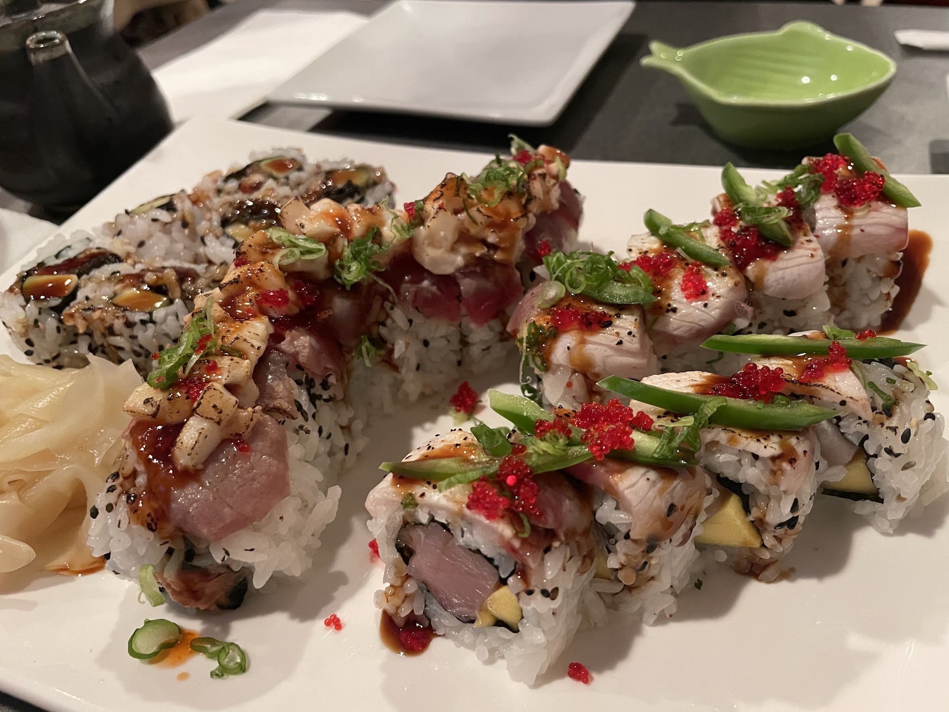 The SSCR portion was excellent, and the crab was lightly battered and deep-fried to perfection, and it was terrific. The Philly roll had a large chunk of fresh salmon and cream cheese and was perfect.