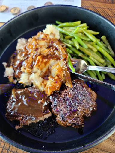 Read moreI really wanted to like this place, but I can honestly say I won't be returning. The staff is friendly and our server (Baylee) was kind and pleasant. We ordered the crabby fries, fried green tomatoes and we both got the Uncle Gordon's chopped steak. The fries tasted ok, but were overly salty and my daughter found a piece of plastic in them. The fried green tomatoes had no seasoning. They didn't taste like the breading or tomatoes themselves even had salt on them. Just really bland other than the toppings. The chopped steak was awful! It took almost 30 mins to get it in the first place. The description says, "Fresh ground beef steak simmered in a savory sweet onion gravy over mashed potatoes and green of the day", which clearly was a lie considering the 2 tiny beef patties were very dry/overcooked and not simmered in gravy like the menu description states. And the mashed potatoes were bland and tasted old. Also, the green beans had no seasoning whatsoever and tasted like the pan they were cooked in. You know how a pan smells when it gets too hot?.....well that's how the green beans tasted and they were undercooked. The best part was the onion gravy, which they don't give u enough of for the mound of potatoes they serve with the patties. Baylee was the best part of the whole experience other than her standing over in the host station talking while we were waiting on our check and again when we were ready to pay. All-in-all it was WAY overpriced for what you get, and what we got was very disappointing. Oh and let's not forget that we still paid full price for everything, even with my daughter finding plastic in her food and me not liking my meal. My daughter literally waited til we got home to complain about how nasty the food was because she said she "didn't want to cause a scene" lol. So again......I will not...