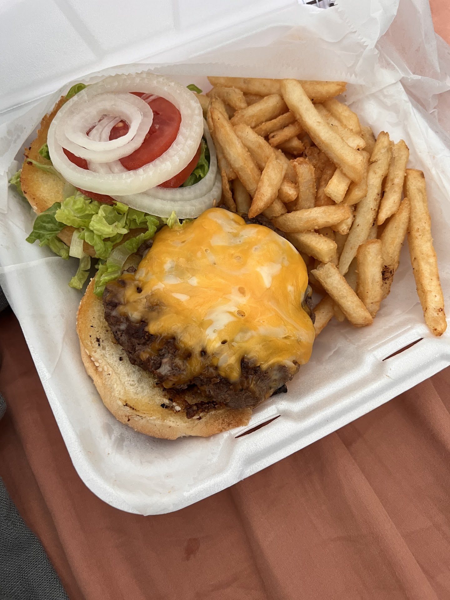Since the pandemic it has been really hard to find a good quesadilla anywhere so when I saw one on the menu I knew immediately it would be my lunch. The shredded chicken was plentiful and full of flavor. It came on a green flour 'dilla with mixed melted cheddar cheese and sautéed onions and peppers. Y'all, there was so much chicken I could have made another quesadilla. I asked for sour cream on the side and got it without having to remind our server. Since my 'dilla didn't come with a side I ordered some fries. They come coated and in a basket. There were so many that both of us ate from the basket and I still had leftovers!!