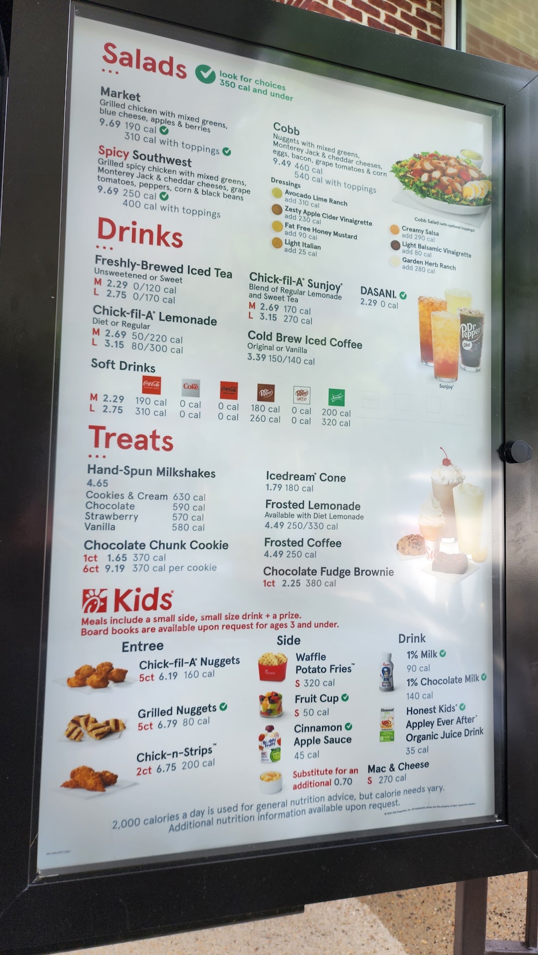 Ā Ā Ā Read moreUntil recently, I have always loved this Chik Fil A. In fact it was my go-to place but since they have remodeled and reopened the wait times are terrible. The servers are still personable and polite and the food is as good as ever but even with a new multibay drive through and employees everywhere it takes forever to get your food. For instance the other day my son and I went there and while he waited in the drive through I went inside to order. I counted 11 employees behind the counter and it still took 10 minutes to get my simple no. 1 order. I came out and my son had still not ordered. I ate my entire meal while we sat in line another 12 minutes. Over 20 minutes just to order 2 meals. That's crazy and unsustainable. Also I am not sure why their remodeling included the failed McDonald's experience of crowding people waiting on their orders in a small space at the end of the counter in front of the door, the restroom access and the condiments. It's a nightmare now, imagine in the summer when they are packed. Obviously this is a poor design and was not well thought out. Needless to say the drive through is a hassle and takes way too long and going inside is a hassle and takes way too long. Sorry Chik Fil A, you had better figure this...
