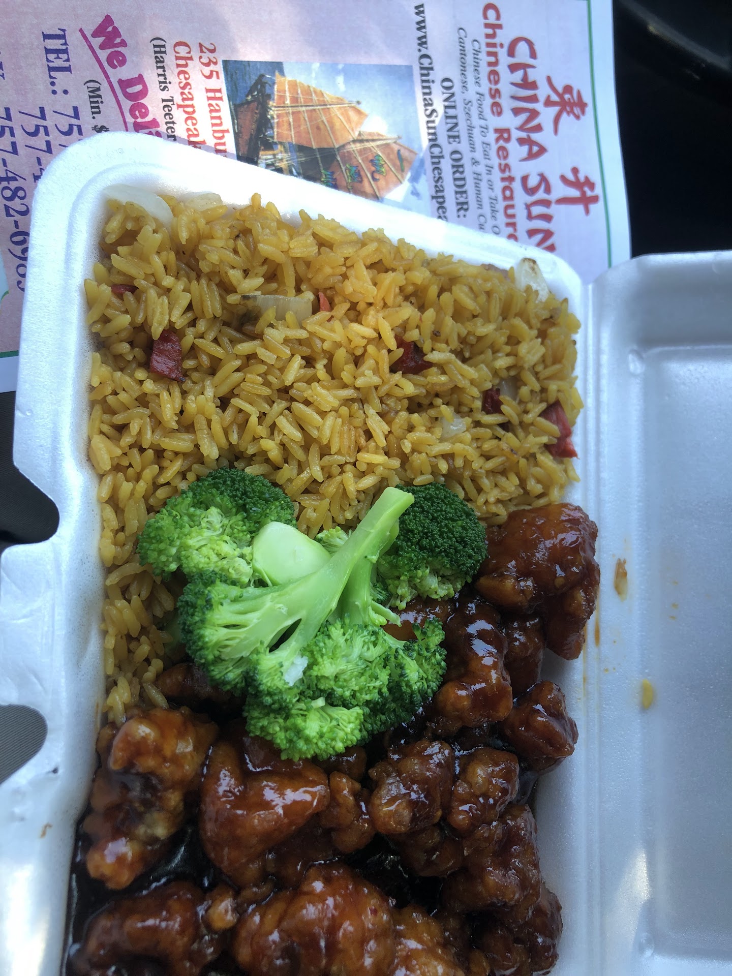 Read moreI have been a customer approximately 6+years if not longer, this is my first complimental survey and l must say l am glad and very pleased to offer up such a well deserved compliment, especially being that we are dealing in a time when food is so expensive and we're getting less for our money these days. However as with many times in the past my FAMILY received great delivery service even after forgetting to mention it was for delivery (which can be a problem in itself).to make a long story short , the food was hot , freshly cooked , and taste d as great is it looked and smelled kudos 2 China Sun restaurant, hope to have many more experiences...