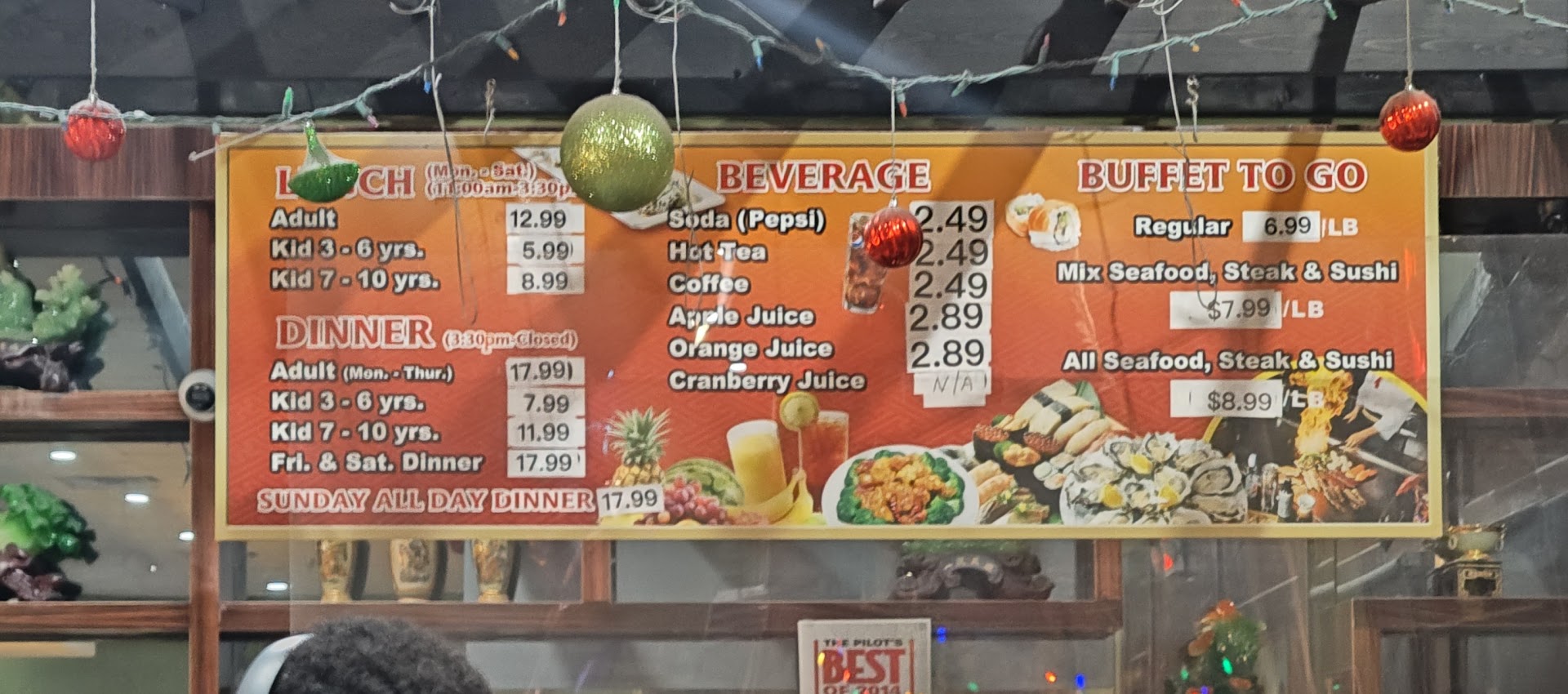 They do offer food for everyone from Chinese to seafood (fried and baked), sushi (limited and so so), soup, sweet potatoes and pizza, fresh fruit and dessert including ice cream (which our kids always loved picking out from the freezer like it was an ice cream truck).