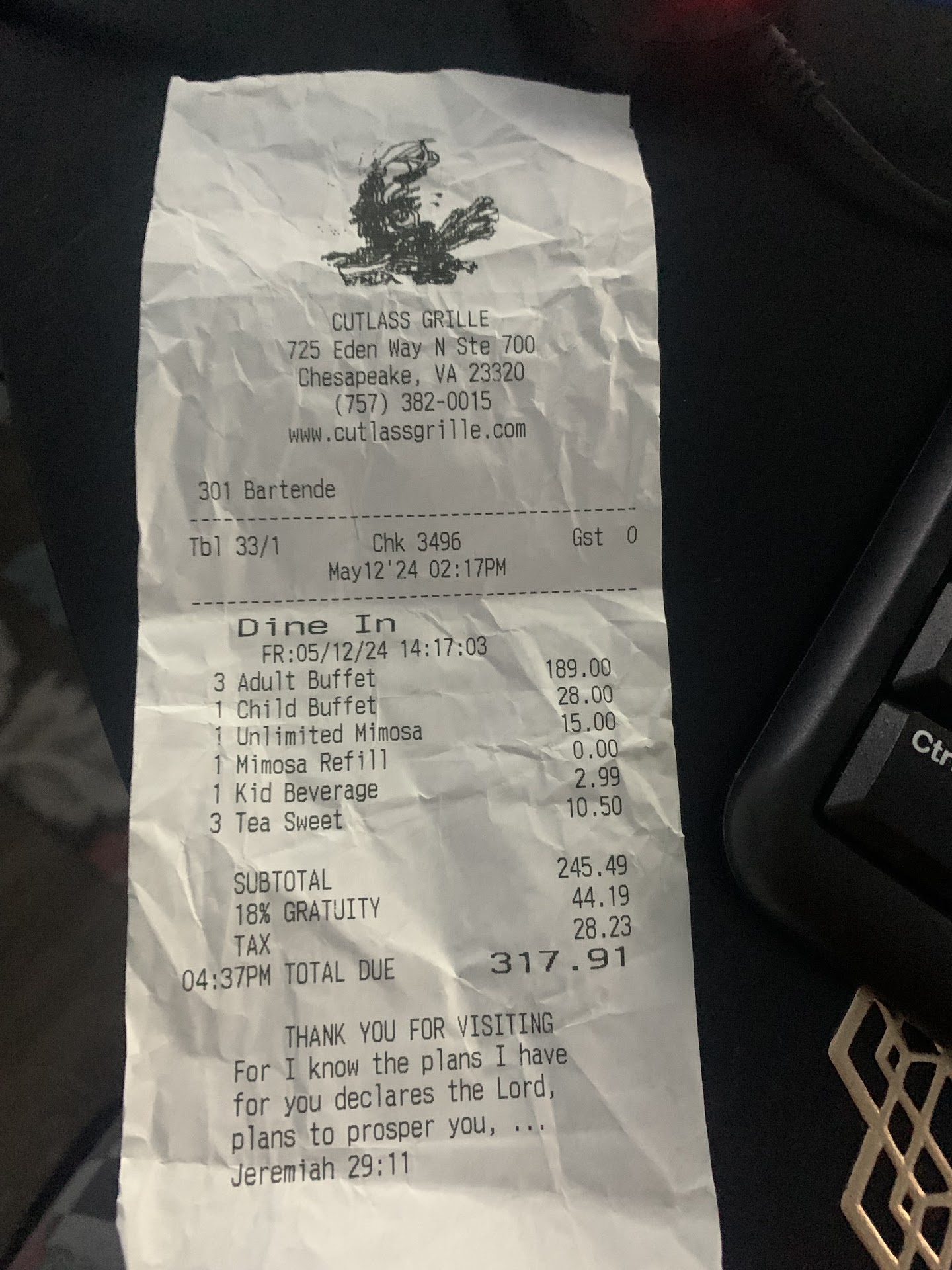 Read moreYesterday on May 12 for Mother’s Day, I decided to take my mom grandmother uncle and son to this restaurant. Upon arrival, we did not realize that they had a buffet style and not the normal menu (Which was not mentioned on anywhere on their website when we made the reservation), but we were OK to sit down and we decided we were still going to eat. My uncle got his plate first and he couldn’t even eat his food it was no flavor which they did comp and I greatly appreciate it, but my issue is that they did not have things properly labeled on the buffet and because of this from the Rasta pasta my son had a allergic reaction. As soon as we left the restaurant, I noticed that he started to have large hives appear on his body and his throat started to close. We immediately had to go around the corner to the CHKD in Chesapeake, right near the restaurant.! I spent $317.91 and that restaurant just to end up being in the hospital for the rest of the night and early morning! I do not appreciate that you did not have it labeled or at least a breakdown of what’s included into the food and because of that my son who was allergic to seafood, tried the pasta because it did not say that it was a seafood pasta it just had Rasta pasta up there on the sign With no mentioning of seafood being included. My son could’ve lost his life yesterday and it was a very Scary experience For him and also myself because I’m very diligent and making sure that none of his food is ever cross-contamination with seafood so we’ve never had this before! I would like for management to reach out to me as soon as possible. I have reached out to the proper resources about this and again I do not appreciate, especially when I spent my hard earned money with you all! I have time stamps from the receipt and the doctors paperwork that will show that we had to go right to the emergency unit after leaving the restaurant. so it was definitely calls from whatever Was...
