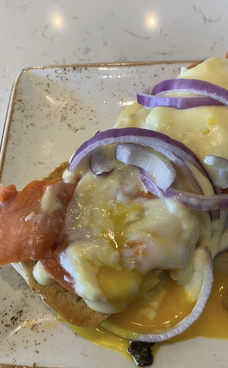 Total fail. Breakfast for 2 on a Thursday morning . Not busy. Had to wait 10 minutes before a server showed up. Other tables were seated after us were attended to. The first thing that signaled that this would be less than an ideal experience was that there was lipstick smudges on one of the coffee cups placed on the table. After ordering, It took much longer than expected to get our food. My wife's food, Chicken Pesto Hash was delicious although the basted eggs were pretty firm. I ordered Smoked Salmon Eggs Benedict. The poached eggs were undercooked and too runny to eat with a fork. I had to send it back. 15 minutes later, the new order showed up and the eggs were actually more undercooked than before. I literally would have had to use a straw to consume the raw egg whites. Fail #2 on my order. (picture is the 2nd fail) The server was apologetic but offered nothing but to remove it from the bill which is nothing. Also, the "Million Dollar Bacon" was not the thick-sliced bacon as stated on the menu, but the same boring bacon you can get anywhere with some cold syrup poured on it. Upon paying the bill, the person asked how everything was and I said, "terrible". She thought I was kidding. After telling her after two tries I had nothing to eat but some potatoes, she went and got the manager. He was friendly and apologetic but offered nothing except telling his cooking staff to cook the eggs right. No discount, no gift card, no nothing, Not sure if...