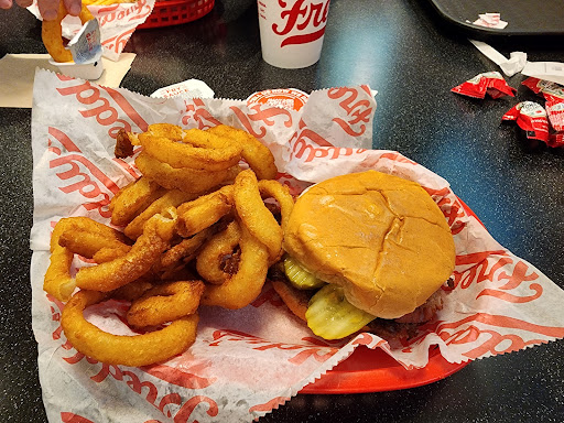 Read moreAte at a Freddy's for the first time at this location (Feb 26, 2025)! I went to order the spicy chicken sandwich. The cashier asked me if I wanted the sauce on it and explained that the sauce was what made it spicy (I thought it was spicy like the Wendy's Spicy chicken sandwich). Bring that I have a minor allergy to jalapeños, I decided against the sauce. I kept asking questions about what comes with the meal. When the cashier asked if this was the first time we ever ate here before, he rang a bell when I told him that it was my first time ever eating at a Freddy's, and that's why I was asking so many questions! The fries are thin, like shoestring fries, and delicious! (I like thin fries. They're not true shoestring fries Cuz they're not curly). The food took about ten minutes, which isn't bad for a high quality fast food place. You can tell they pride in their food and service. The cashier we had came around to tables while we were eating and asked us if everything was OK. I'd never seen that in a fast food restaurant! I will definitely come here again! It's not your ordinary fast food restaurant. We didn't get shakes, so I can't...