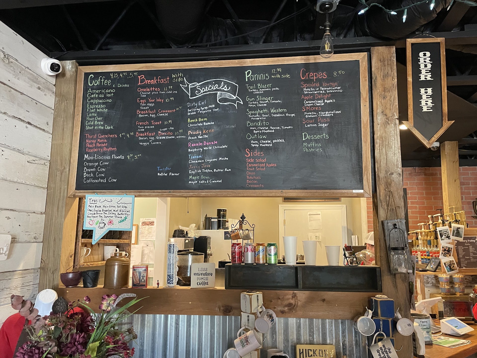 They have a decent selection for breakfast. I've tried everything and it's amazing! However, I want to highlight the specialty coffees. Prices are quite decent for coffee (LESS THAN STARBUCKS!) and you can get some delicious flavors. Check the checkboard on the left wall when you walk up to the register for their seasonal flavors. I currently love the Autumnal Bliss but I've tried most of them at least once and even when they don't advertise it, you can still get the seasonal concoctions in other seasons, like the honey and lavender latte. You might also consider doing a "Roll for Flavor" where Brandon gives you DnD dice that randomizes your drink. He's good about accounting for any dietary restrictions or personal preferences so it always comes out good.