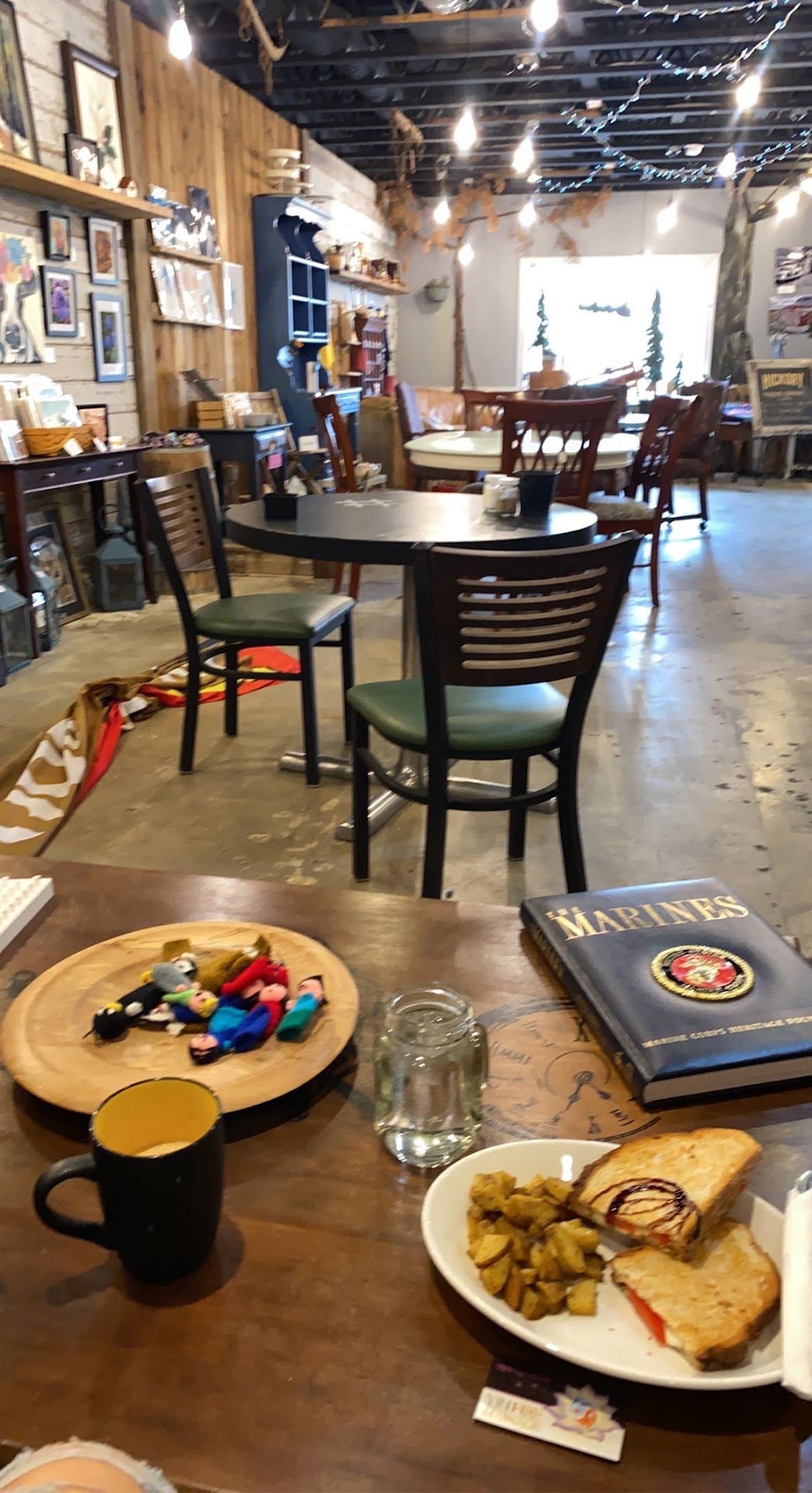 I was immediately reminded of small-town New England where I was born, raised, and recently moved from. The place is filled with items made by local artisans, cozy couches and chairs, coffee tables with several board games to choose from, books, etc. As I was ordering my coffee, the nice teenager at the counter told me a little bit about the shop and that they're a nonprofit that employs those with special needs, helping them to become more independent. As a mom with special needs kiddos, this is near and dear to my heart.