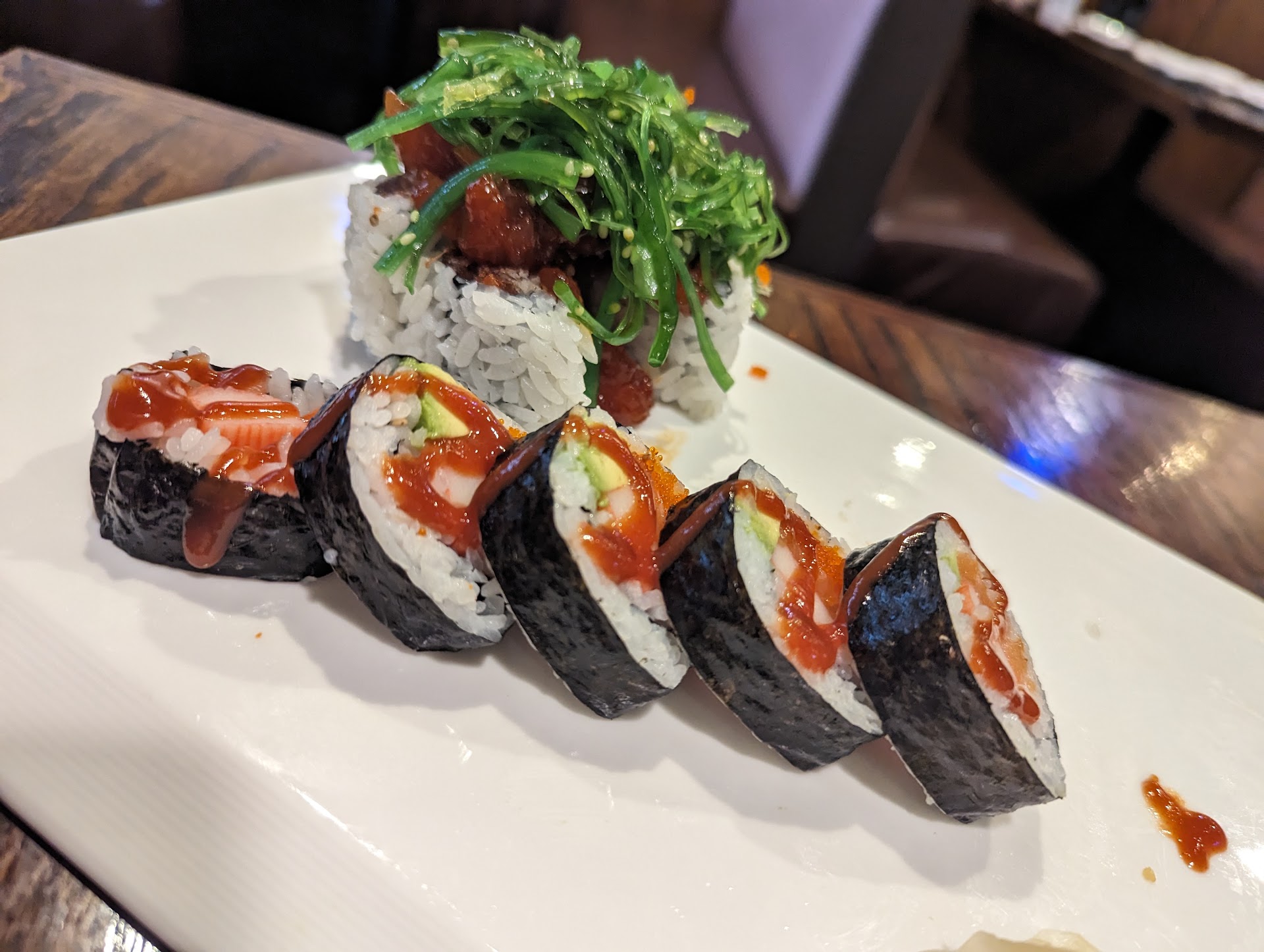I really enjoy the sushi, the rice is nice and small and all the rolls have flavors that go together. They're accommodating if you want to swap out something or add a sauce. I've never had a messy roll here, so expect a tight roll that holds up as you eat it. The fish is fresh and tastes great.