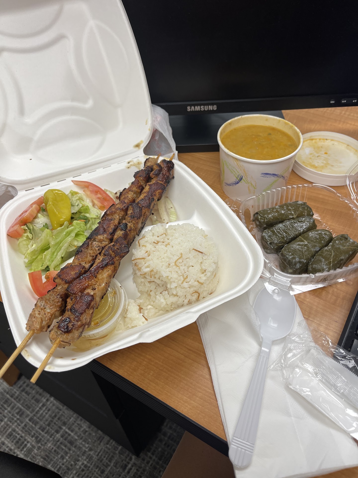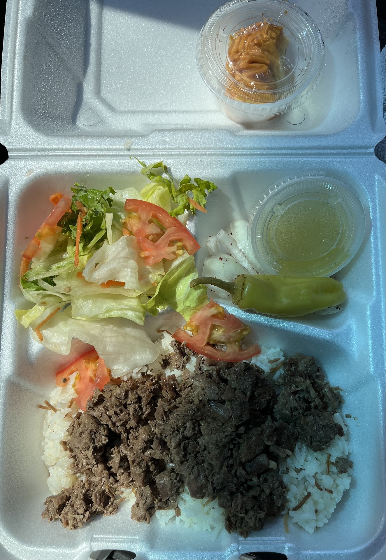 I ordered a number two, The rice 9/10 Beef 6.5/10 Yogurt 8/10 Baklava 10/10 (outstanding really) Tomato sauce 6/10 Pita in bottom soaked soggy by the sauce 4/10 I'm not sure if it was me or the combination of food. Beef was kinda dry and cold, BUT the rice was HOT. They weren't near close either, so I'm unsure what went wrong there. It was kinda just Beef and tomato sauce, very unseasoned as well. Couldn't smell or taste garlic or other significant spices at all.