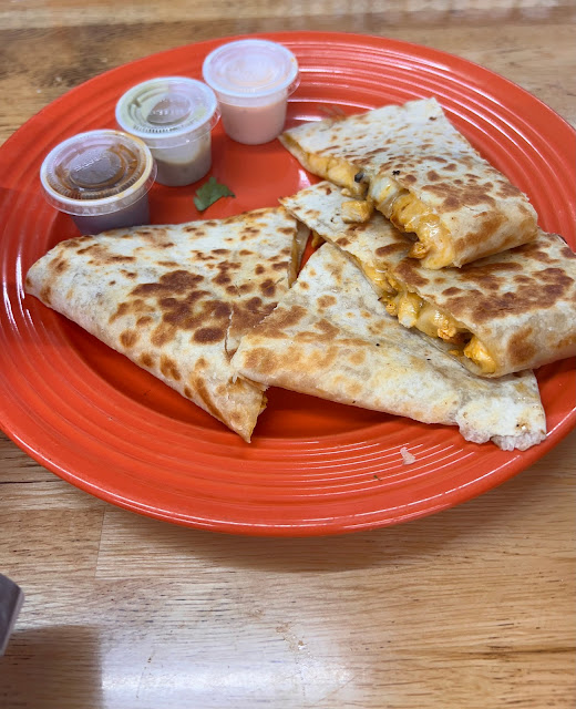 Burrito says the name is deceiving it is definitely more “more” then burgers. Dumpling says we would definitely get takeout, but probably would not eat inside again. It is essentially located in a little convenience store. There is one table that seats three, and a bar top counter that seats three more. It was a little hot inside. The lady who runs it is super friendly, and you can tell has a passion for food, especially Mexican food. We had the spinach and cheese empanada, chicken quesadilla, onion rings, a chicken taco, and chorizo taco. She is also completely passionate about her homemade sauces. We would definitely support this little hole in the wall...