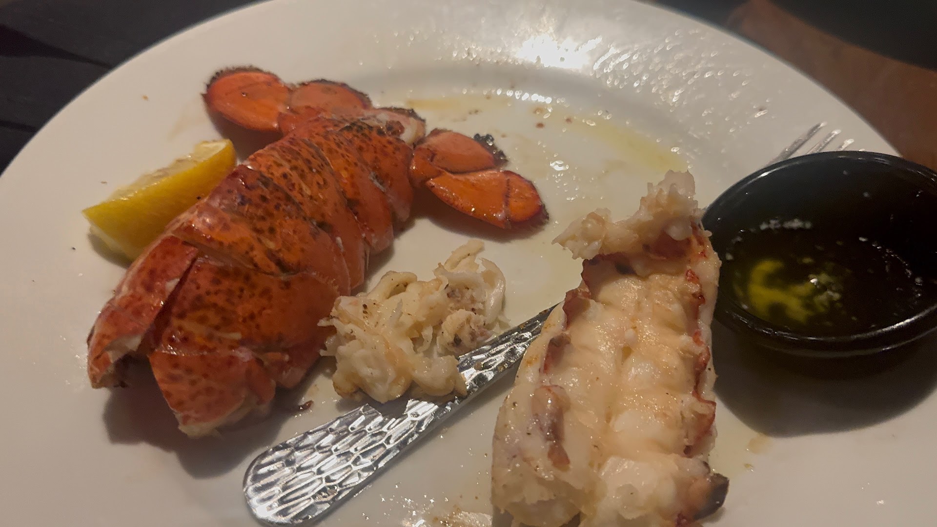 The issues escalated when our food arrived. My wife’s meal—a double-steamed broccoli, Outlaw Ribeye, and lobster tail—was far below the standard we’ve come to expect. The broccoli was undercooked, and the lobster tail was visibly underprepared. The rest of our party received their meals, but my own order was incomplete. When it did arrive, the steak was excessively drenched in seasoning sauce and butter to the point where it was dripping off the plate, the lobster tail was undercooked, and the fries I ordered never arrived.