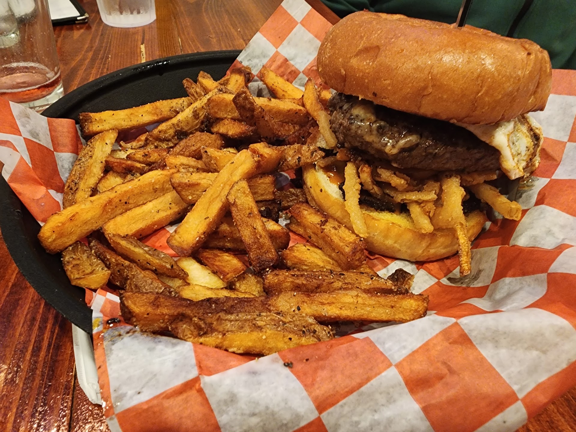 After about ten minutes or so, our burgers and fries came to the table. The burgers looked really good and juicy. The top of the bun even has McGrath's Burger Shack on it. After digging into the burger, it was great. It was cooked as requested and hot. There was good flavor to it as well. The fries were also good and seasoned well. Closer to finishing up, he came back with the check. Once we finished, we were ready to pay, but our server hadn't come back in a while. After waiting a while, we ended up going inside and ended up paying there instead.