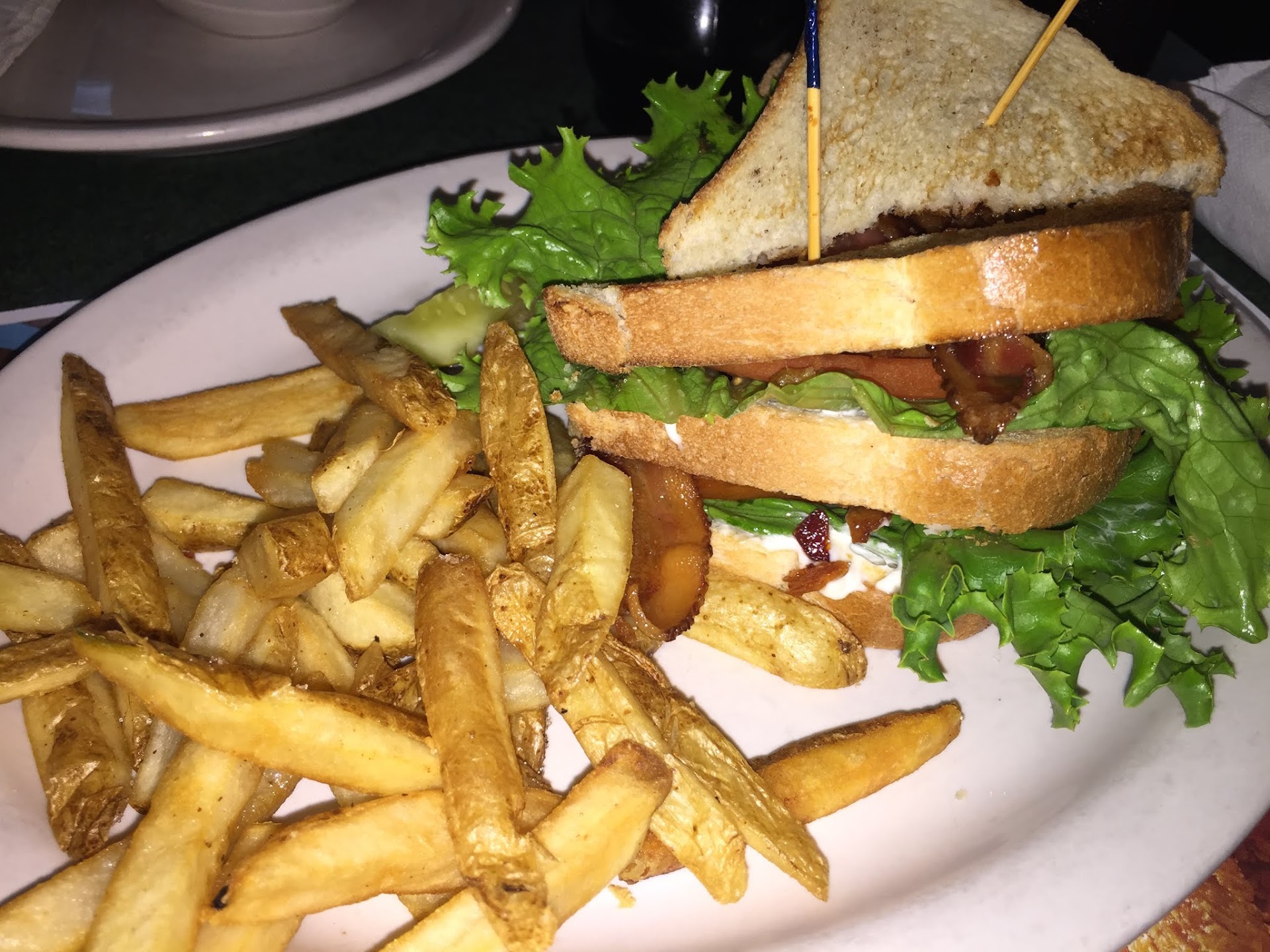 Our food was perfect. My Metro Club was a true triple decker club sandwich, with all the trimmings of a club. It was cut in half instead of quarters, and came with fresh cut fries. Delicious!