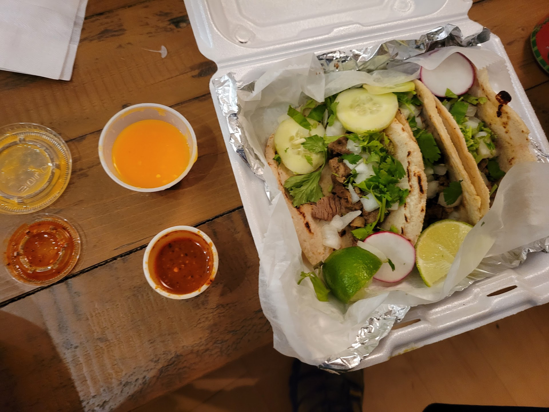 I opted for the birria taco trio and a cheese papusa. In all honesty, I felt like I had won the lottery when I saw papusas on the menu, theyāre my favorite Salvadoran food. The papusa was MASSIVE and perfectly made, it even had an epic cheese pull. The accompanying curtido was so good Iāll be craving it for weeks. The birria tacos were heavenly, so tender and juicy, and the consommĆ© was so full of flavor, I couldnāt help but use every last drop.