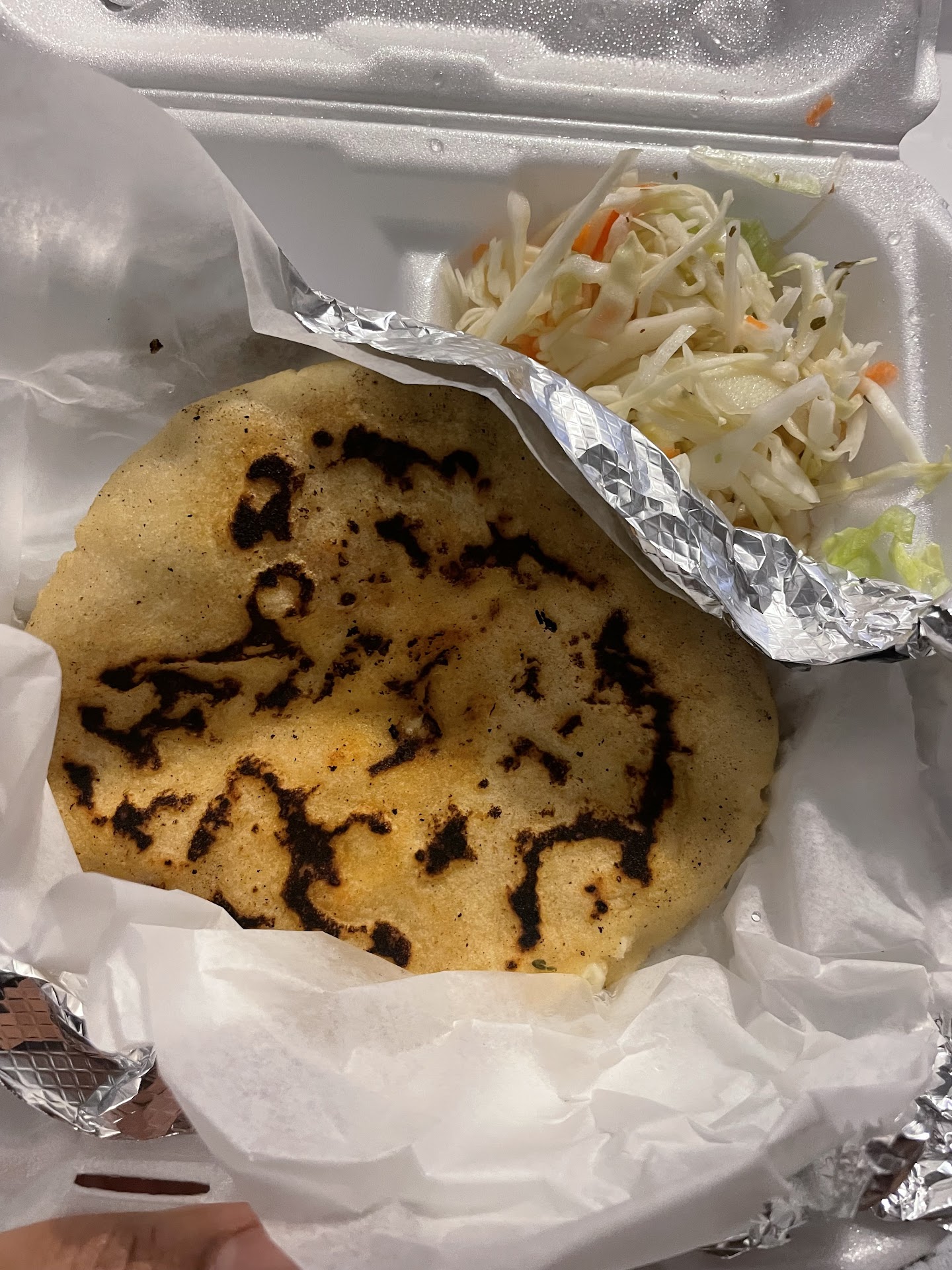 Ā Ā Ā Read moreI ordered a chicken pupusa that was slightly charred on the outside and it was not very warm either which is essential to get that cheese pull. When I pulled it apart there was a LONG STRAND OF BLONDE HAIR that was inside with no cheese pull. I was immediately sickened. I was so hungry and didnāt have time to take the food back to get a refund so I was going to take the L and move on. That was until I opened up the pupusa and found ANOTHER STRAND OF HAIR! This time it was black. I was shocked and disgusted. I understand things happen when humans are preparing food thatās why hairnets need to be mandatory as part of safe food handling. Using a lint roller to catch any shed strands of hair on clothing should be a regular practice for anyone preparing or serving food. I will not...