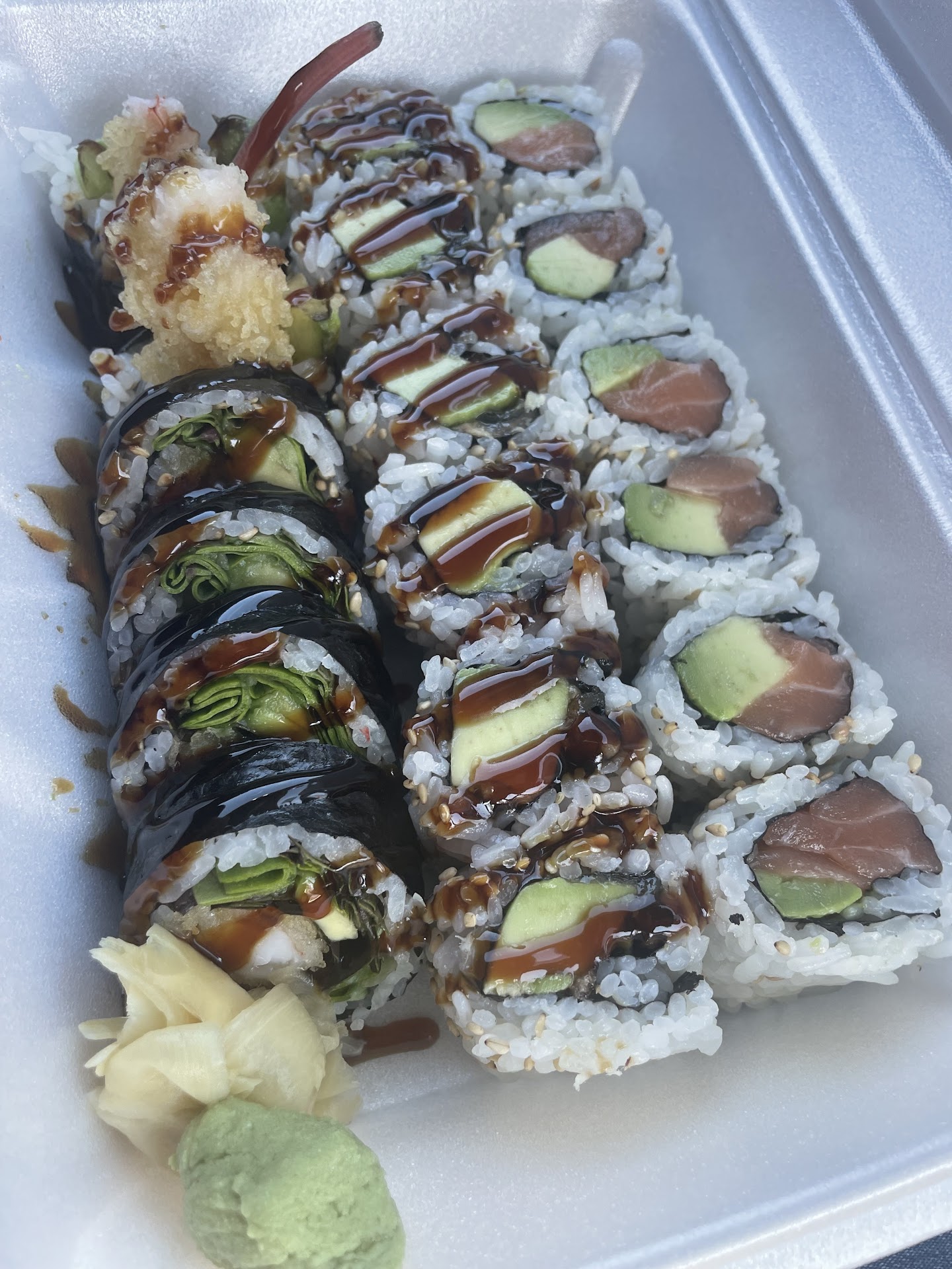 Read moreHorrible sushi. Salmon was so off we belched an awful fish smell after a few bites. Spicy salmon/tuna was so mushy it dripped out of the roll when picked up. Spider roll was okay but lacked in flavor. Rice seemed old and some of the rolls came apart before being picked up out of carton. Shumai was cold but the sauce was warm and gave it some flavor. Threw away the rest of the Philly roll and Alaska roll. None of the rolls looked like the pictures on the menu. Wasabi had no flavor and no heat. Gave 4 stars for service because of the remark texted to me at delivery that I better get my order now or it will be cancelled. $12 delivery fee plus tip and not a very...