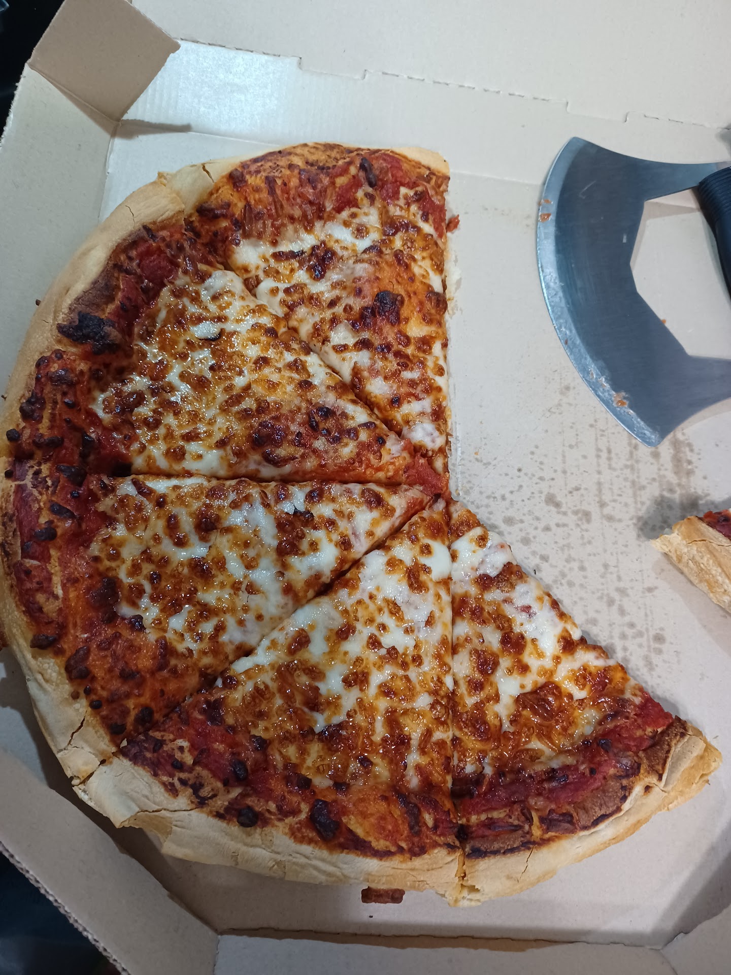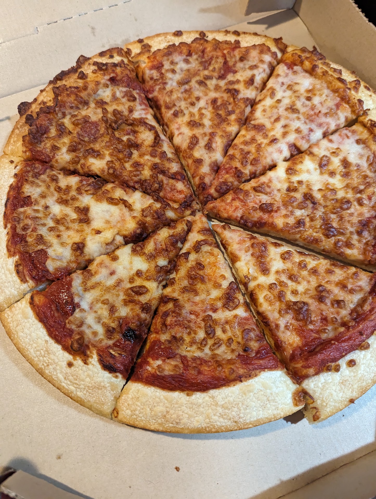 Read moreUpdate: 4/20/24 This is the last time I'm giving this location a chance. If I'm craving PH, I'll do carryout from another location or just choose another pizza spot. I order 2 pizzas: a medium cheese & large pepperoni. Both pan pizzas. First, these were not pan pizzas unless their hand tossed looks like thin crust. Secondly, the cheese pizza looked horrible and tasted just as bad. The pepperoni pizza looked fine & my son was satisfied. This isn't the first bad experience I've had with this location since my last review, but it will be my last. Do better Pizza Hut! **Previous review: This is just tonights experience because I've had great pizza from this location many times. However, tonight was not good. Customer service was great but the food was not. I ordered 3 personal pan pizzas. I picked them up & dropped one off to my mom's house. I look at it when I get to her house & the pizza is burnt, it's hard & hardly has any cheese on it. I go back out to my car to look at the other 2 pizzas & they look the same. There was no issue when I called to request that they be remade. I get the new pizzas & although they're not burned, they are definitely not the usual personal pan pizzas I get from them. I dropped off the second pizza to my mom, my son ate his & i nibbled mine but didn't even want it anymore. Not sure if i can post a pic, but it doesn't do it justice on how thin this pizza is. Very...