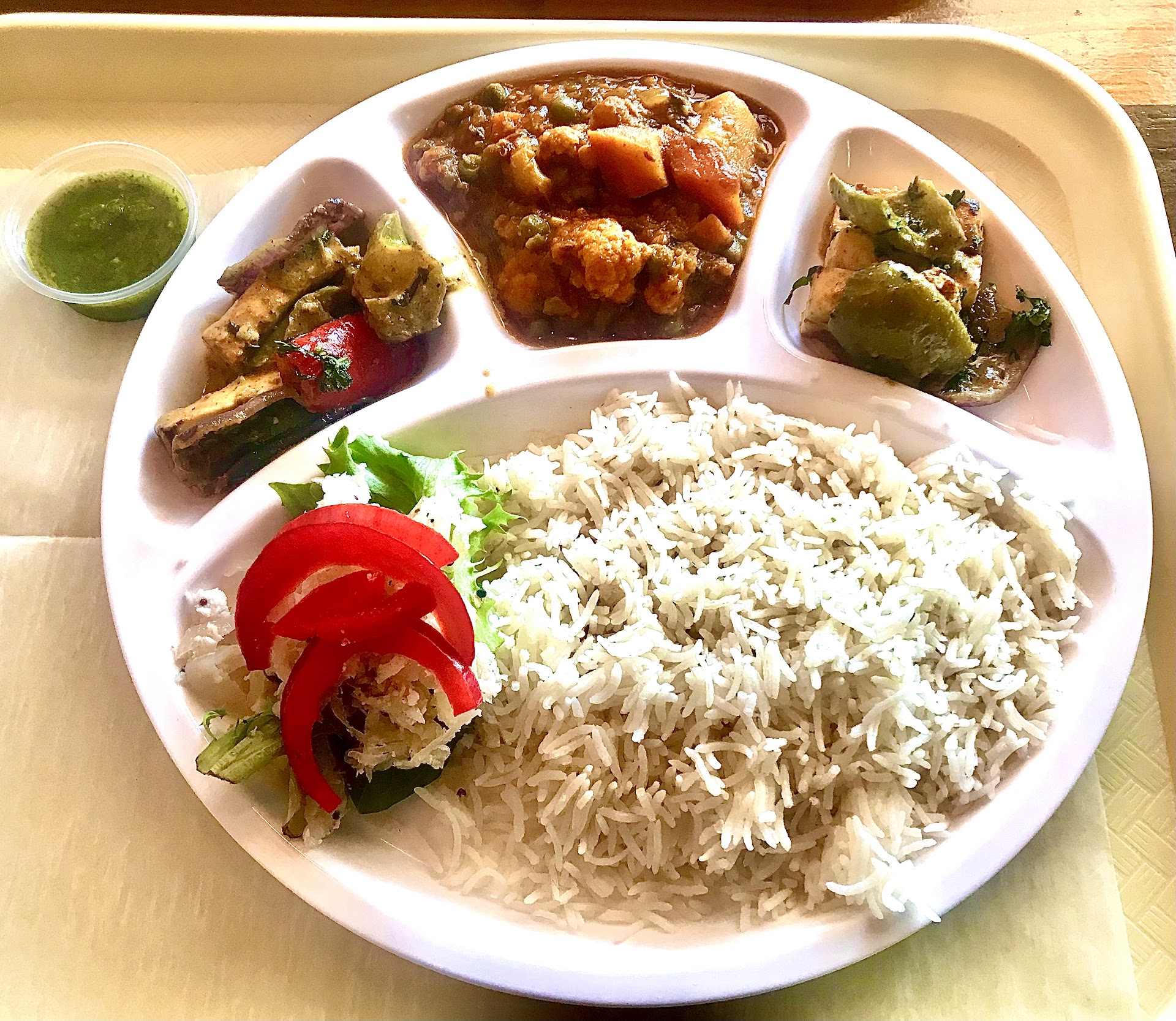 Read moreStopped into Rajput today for lunch with my brother. This was my first time here. Not crowded and was able to order and be seated very fast. My brother and I both ordered the vegetarian Thali plates which included a choice of vegetarian entrees and a salad and sauces. I selected mixed vegetables and paneer for my entrees, and mixed lettuce, pickled onions and shredded coconut slaw for my salad and mint chutney for my sauce. I also made an order for 1 garlic naan to share with my brother. He ordered the same salad but mixed vegetables and Channa Masala for his entrees. Both Thali plates come with either fried vegetable rice or basmati rice and roti. Flavors were delicious, perfect spice level on the mixed vegetables and Channa Masala. I particularly loved the paneer. It had a lovely taste and perfect firmness with a nice citrus brightness. The garlic naan was exactly as I love, plenty of garlic and perfect thickness. I also completely enjoyed an after-lunch cardamom chai, you should try one! The owner, Paul, is a genuine joy to talk with and an awesome chef. Overall this was an excellent experience and I will return if in the area again. Thank you for a great...