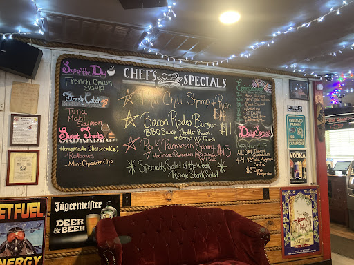 The place has a cool, motorcycle crowd, local vibe to it. It felt like everyone there knew one another. They have a daily specials board and daily happy hour. The wait staff was friendly and very busy. Normally they have a shrimp special for $10.95 (friend or steamed) every Saturday. There is a separate smoking section (grandfathered in) and is separated by two swinging doors. I've got a crazy sense of smell and I did not smell smoke until I went to the restroom, which is right next to it. Everyone there was super friendly. Lots of beer selections, as well as a full bar.