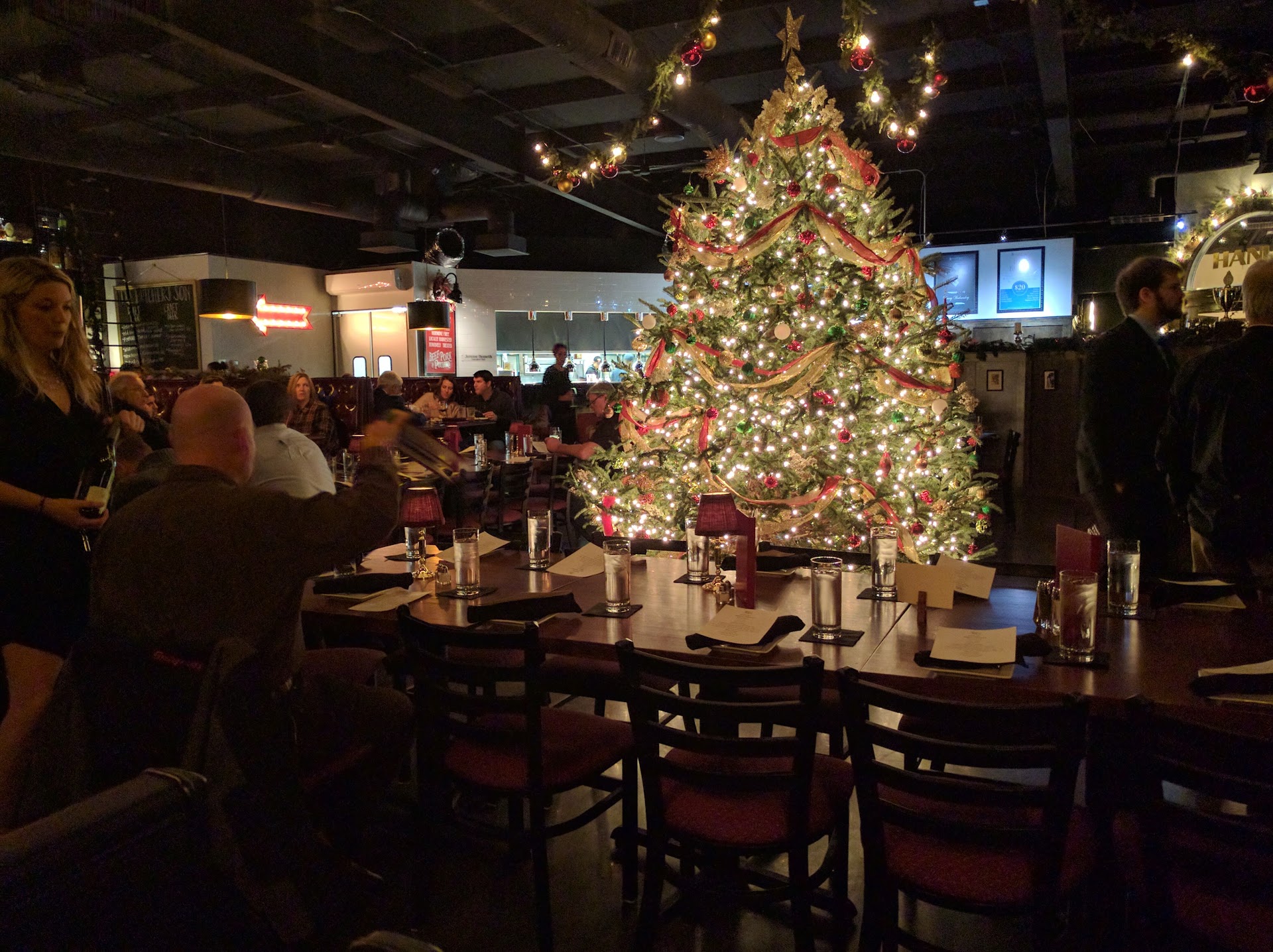I came to this location with my wife, and we were both very impressed by the decor (some of which is pictured) for the holiday season. I tried one of the bar's "special" mixed drinks, and found it to be mixed excessively strong, though reasonably well made. My wife had a red wine, and the portion was quite generous.
